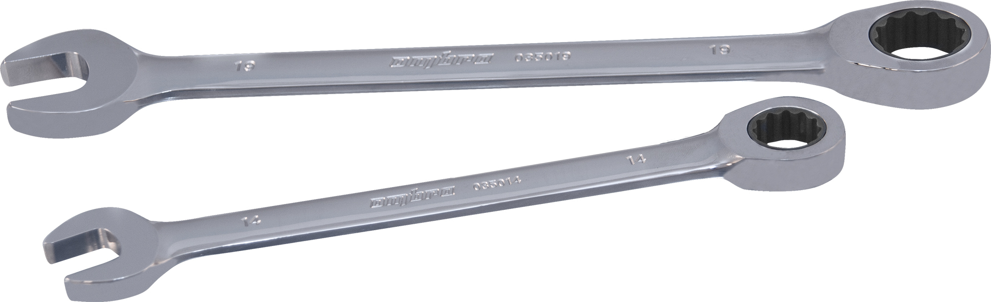 Описание Гаечный ключ с накидной рабочей частью со встроенным храповым механизмом. Поставляется в комбинации с рожковой частью того же размера. Ключ применяется при обслуживании крепежа при свободном его вращении, без экстремальных нагрузок. Малый, 5град., обратный ход делает ключ незаменимым в ограниченном рабочем пространстве. Храповой механизм "SNAP GEAR", с колесом в 72 зуба, обеспечивает достаточно высокий передаваемый крутящий момент благодаря закаленной особым способом хромованадиевой стали, применяемой при производстве механизма. Ключ изготовлен по стандарту ANSI, имеет трехслойное хромоникелевое покрытие, зеркально отполирован. Область применения Ключи гаечные комбинированные ключи - универсальные гаечные ключи, совмещающие в себе функционал и преимущества рожковых и накидных ключей. Зевы комбинированных ключей имеют одинаковые размеры. Именно сочетание сильных сторон рожковых и накидных ключей и нивелирование сторон слабых делают комбинированные ключи исключительно широко востребованными со стороны потребителей и применяемыми в самых разных сферах - производственной, ремонтной, авторемонтной, бытовой и других. Ключи гаечные с открытым и кольцевым зевами предназначены для монтажа либо демонтажа резьбовых соединений. Размеры