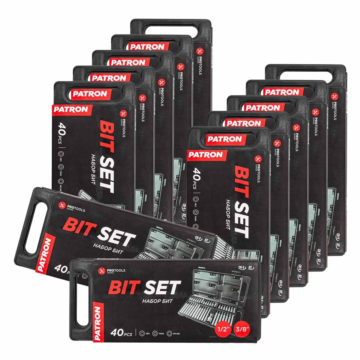 ( 12 K-T ) Набор бит с битодержателями 40пр. (10мм)(75/30мм:T20-T55,H4-H12,M5-M12), в пластиковом кейсе PATRON P-4401C ( 12 K-T )
