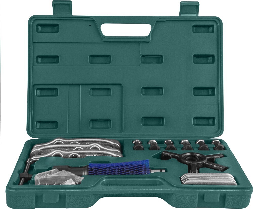 Содержание: Гидравлический цилиндр Ø=37.7 мм, L=160 мм.; Универсальная траверса; Захваты комбинированные 3 шт.; Стяжки захватов 6 шт.; Крепежные элементы (болты, гайки) 6 комплектов; Удлинитель для толкателя 30 мм.; Удлинитель для толкателя 50 мм.; Пластиковый кейс.