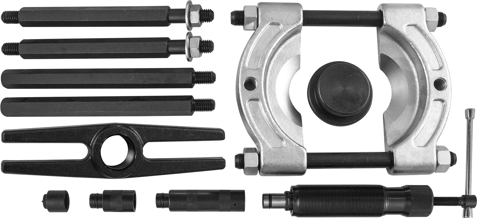 Содержание: Съемник-сепаратор 105-150 мм в сборе со стяжными шпильками; Гидравлический цилиндр Ø=37.7 мм, L=160 мм.; Траверса; Соединительные шпильки для тянущей части 2 шт. L=175 мм.; Удлинители для тянущей части 2 шт. L=175 мм.; Опора плунжера; Удлинитель толкателя; Металлический кейс.