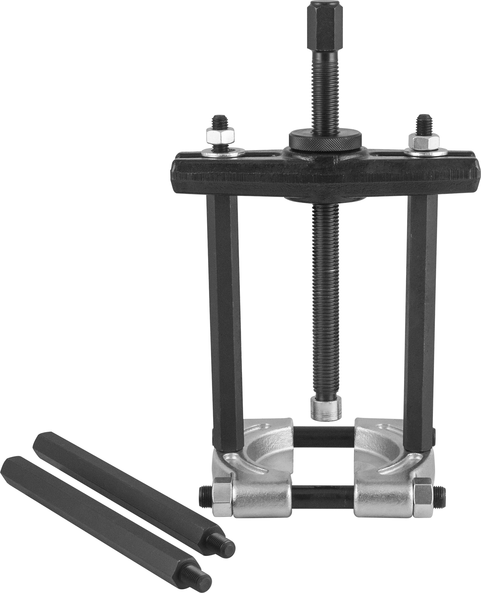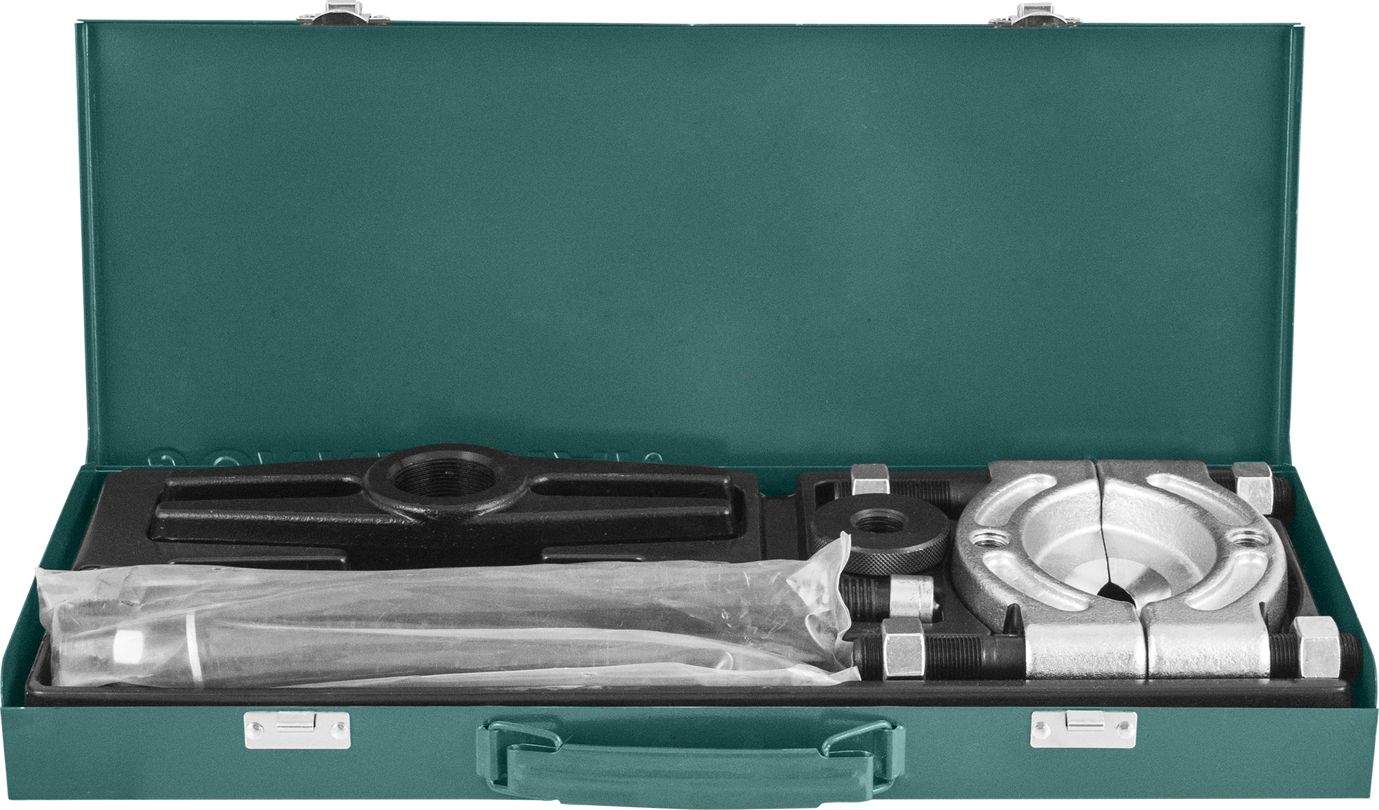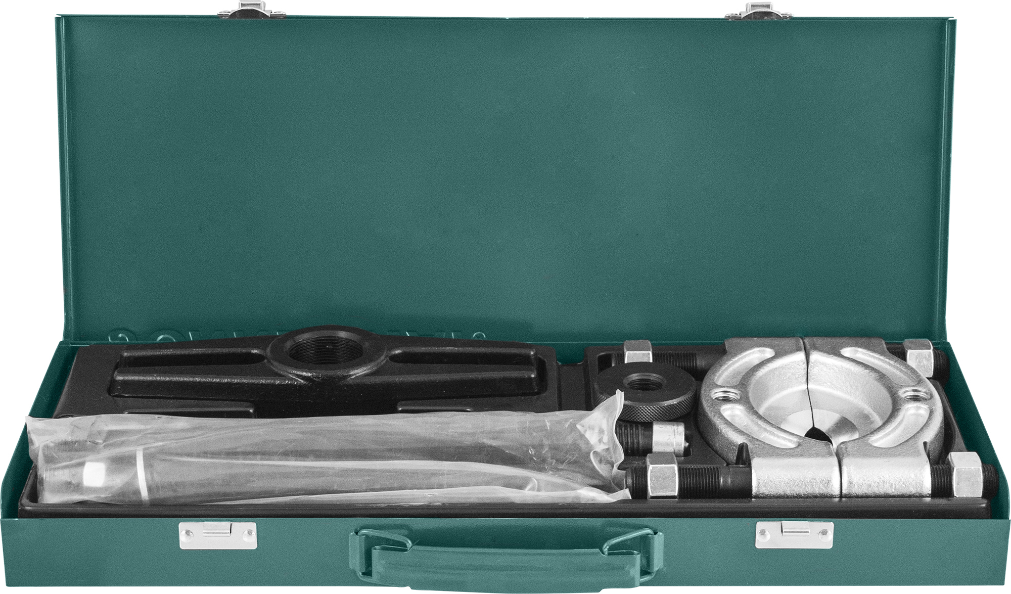 Содержание: Съемник-сепаратор 75-105 мм в сборе со стяжными шпильками; Ходовой винт L= 280 мм.; Траверса; Резьбовая втулка; Соединительные шпильки для тянущей части 2 шт. L=200 мм.; Удлинители для тянущей части 2 шт. L=200 мм.; Опора ходового винта; Металлический кейс.