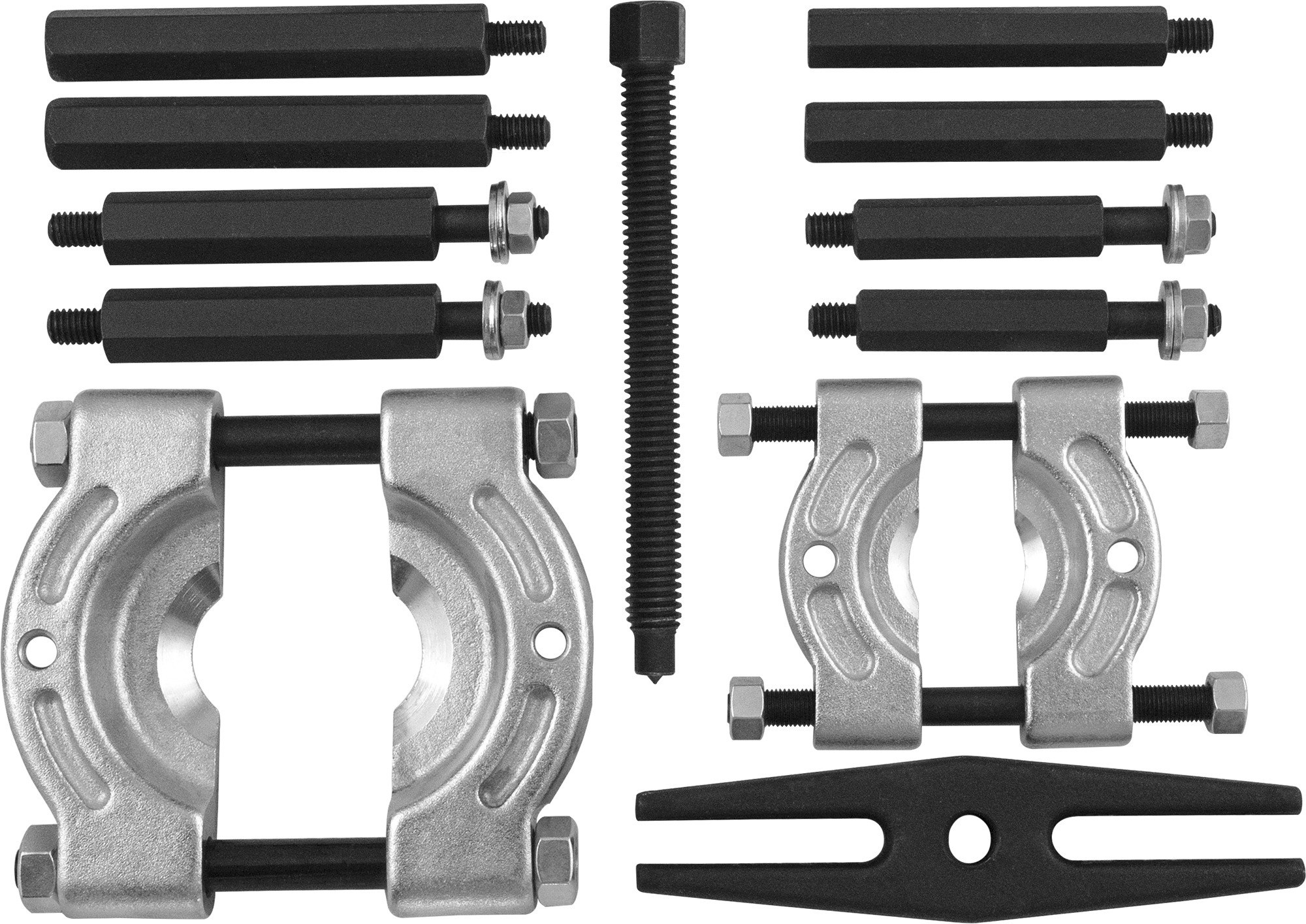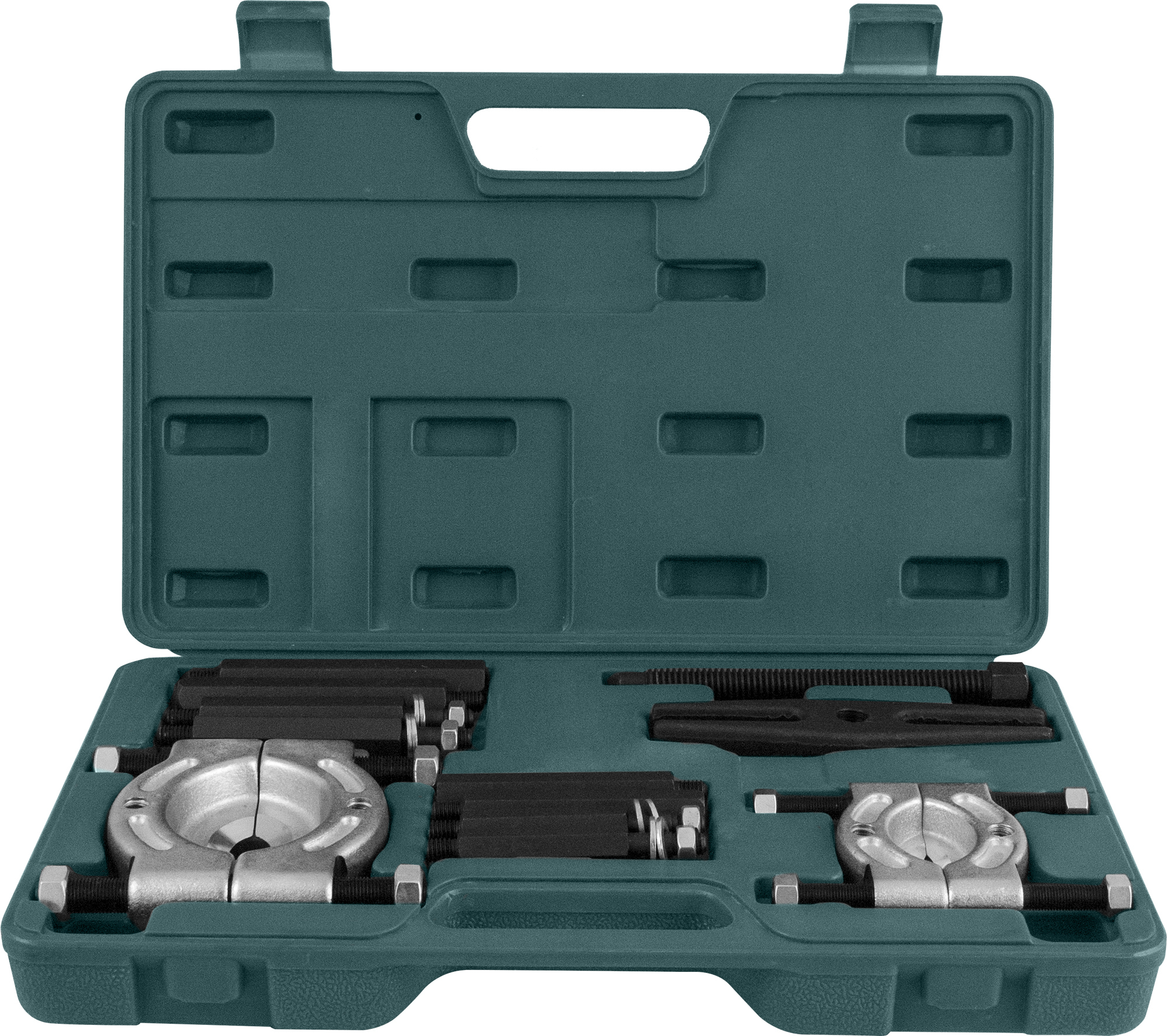 Содержание: Съемник с сепаратором 12,7х135 мм., диапазон 30-50 мм.; Съемник с сепаратором 16х165 мм., диапазон 50-75 мм.; Ходовой винт 175 мм.; Траверса; Соединительные шпильки для тянущей части 127 мм., 4 шт.; Удлинители для тянущей части 150 мм., 4 шт.; Пластиковый кейс.