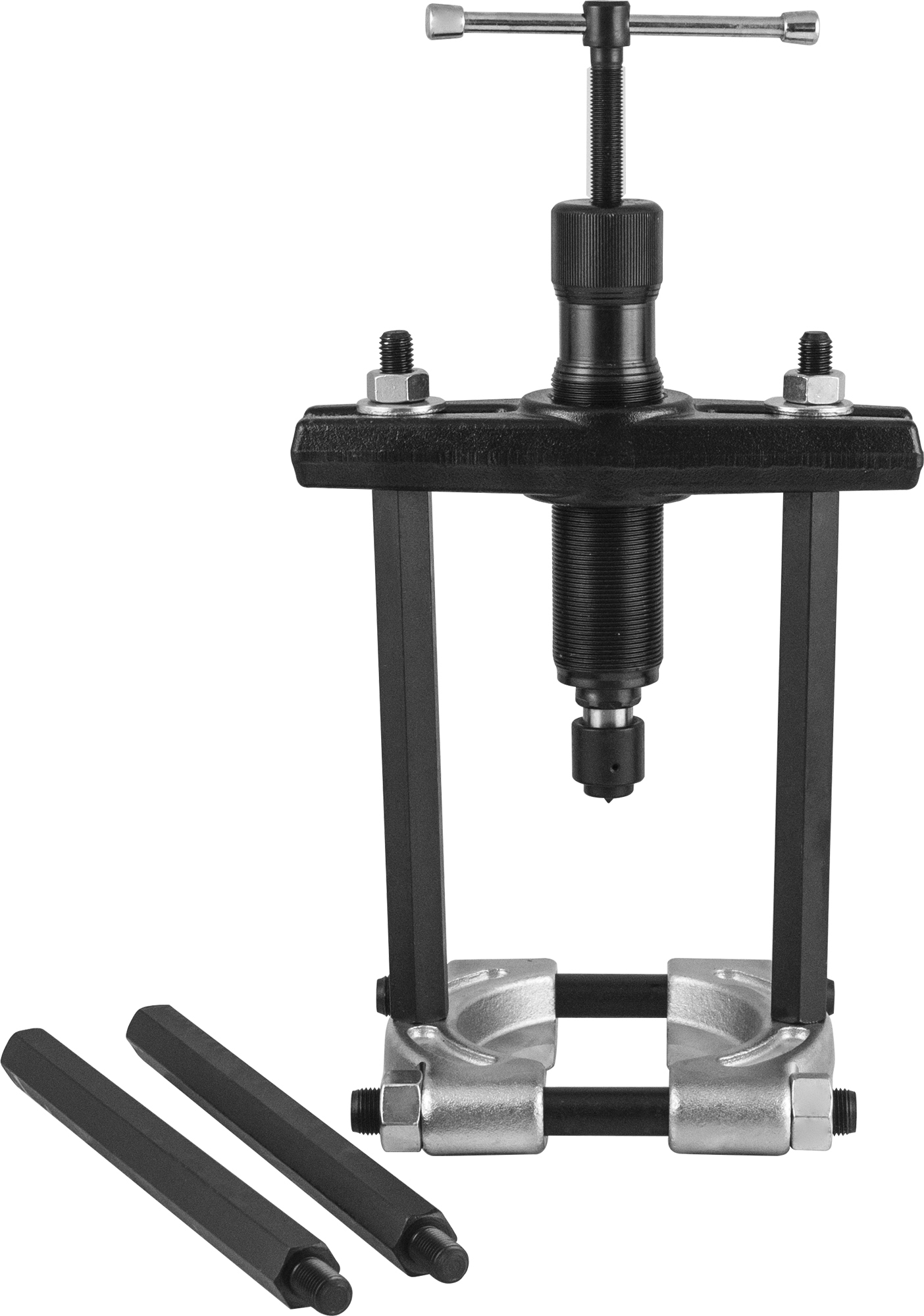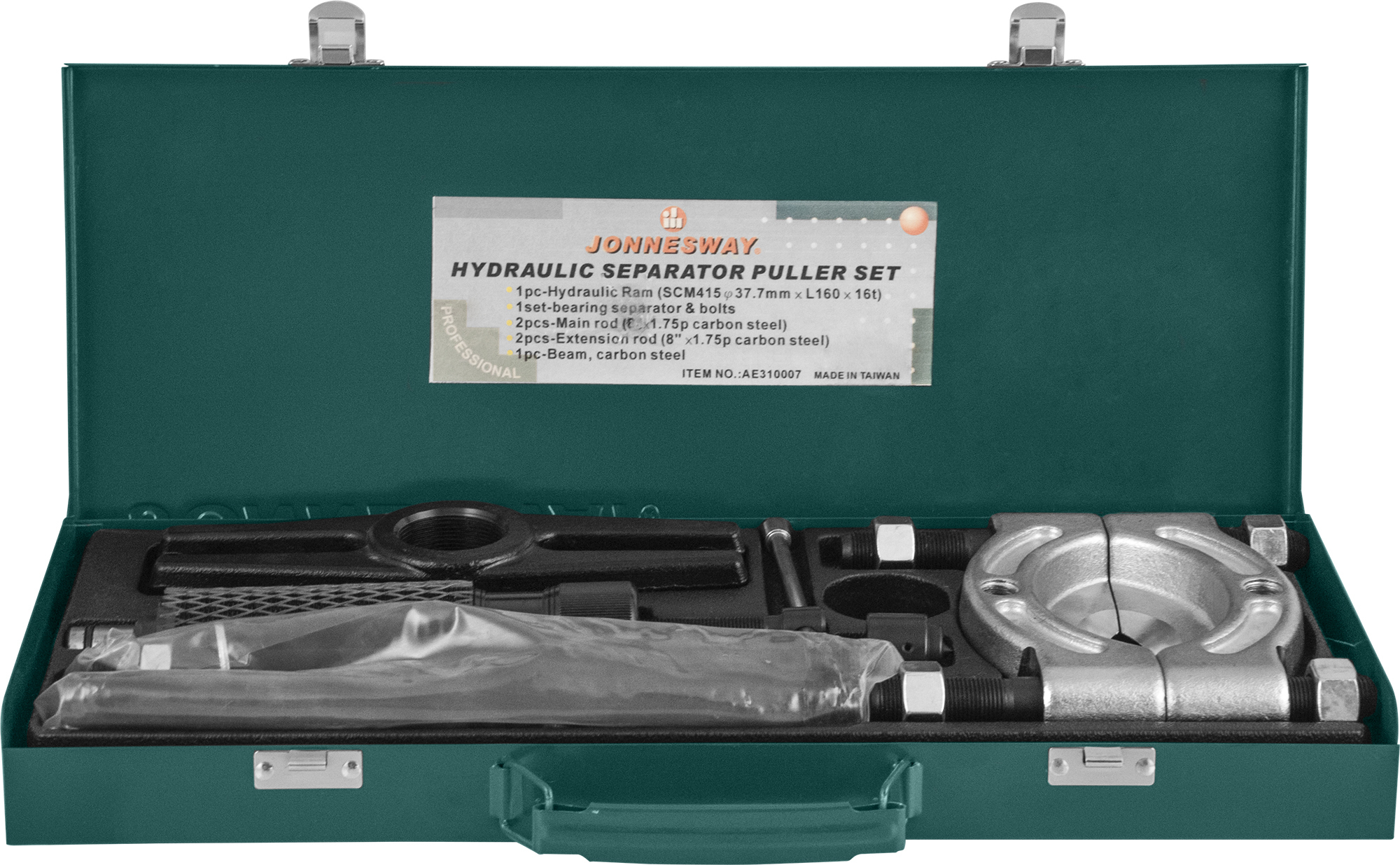 Содержание: Съемник-сепаратор 75-105 мм в сборе со стяжными шпильками; Гидравлический цилиндр Ø=37.7 мм, L=160 мм.; Траверса; Соединительные шпильки для тянущей части 2 шт. L=200 мм.; Удлинители для тянущей части 2 шт. L=200 мм.; Опора толкателя; Металлический кейс.