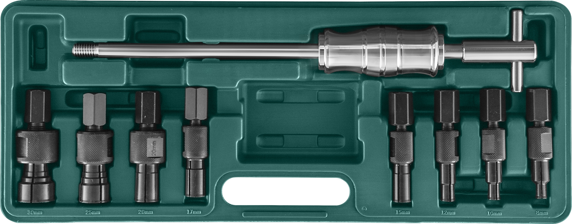 Содержание: Разрезные втулки, 8 предметов: 8, 10, 12, 15, 17, 20, 25, 30 мм.; Обратный молоток с бойком массой 1 кг.; Пластиковый кейс.