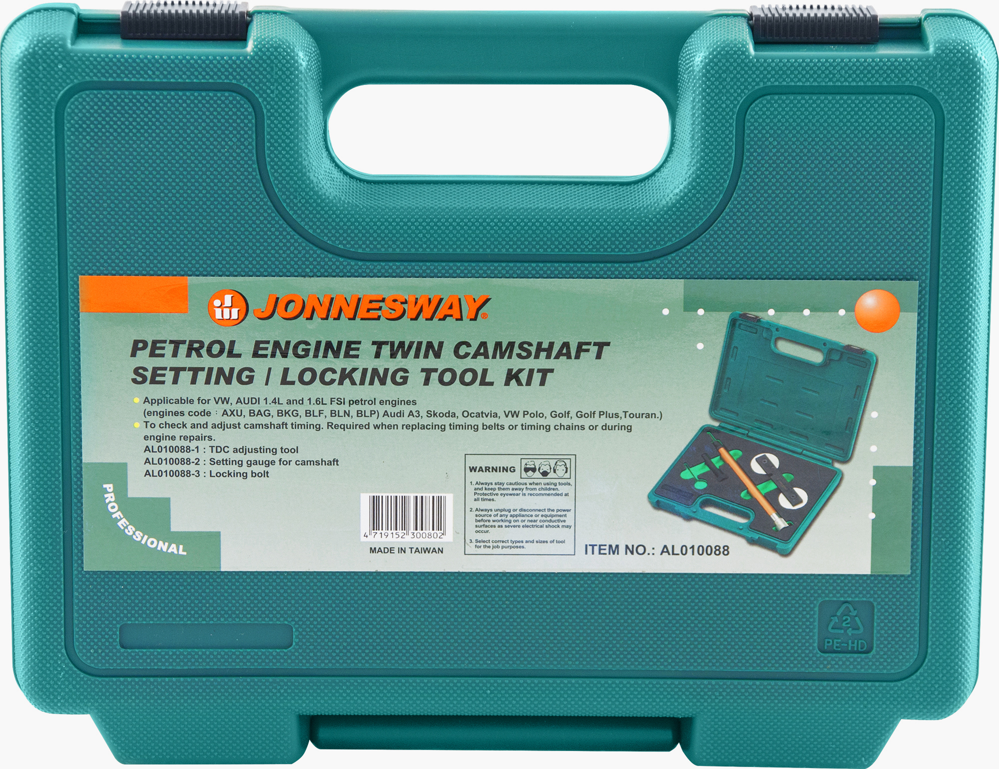 Содержание: Фиксирующий штифт для плунжера натяжителя (аналог VAG T40011); Фиксатор распредвалов (аналог VAGT10171); Фиксатор коленвала (аналог VAG T10340); Стойка для индикаторной головки часового типа (аналог VAG T10170); Пластиковый кейс.