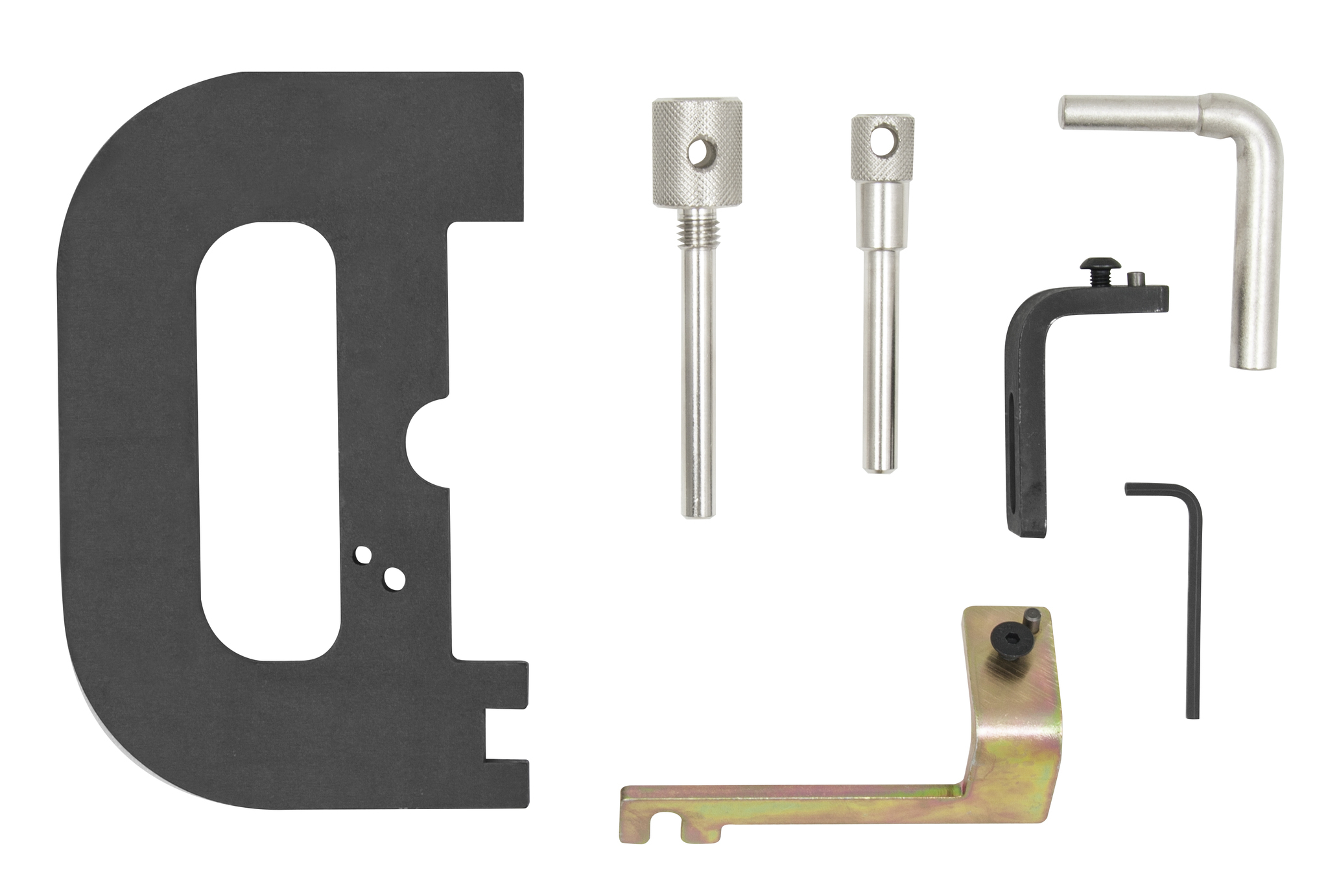 Содержание: Фиксатор коленвала (MOT 1489); Фиксатор коленвала (MOT 1054); Фиксатор распределительных валов (MOT 1496); Монтажный кронштейн (MOT 1750); Фиксатор 8 мм.; Шестигранный ключ.