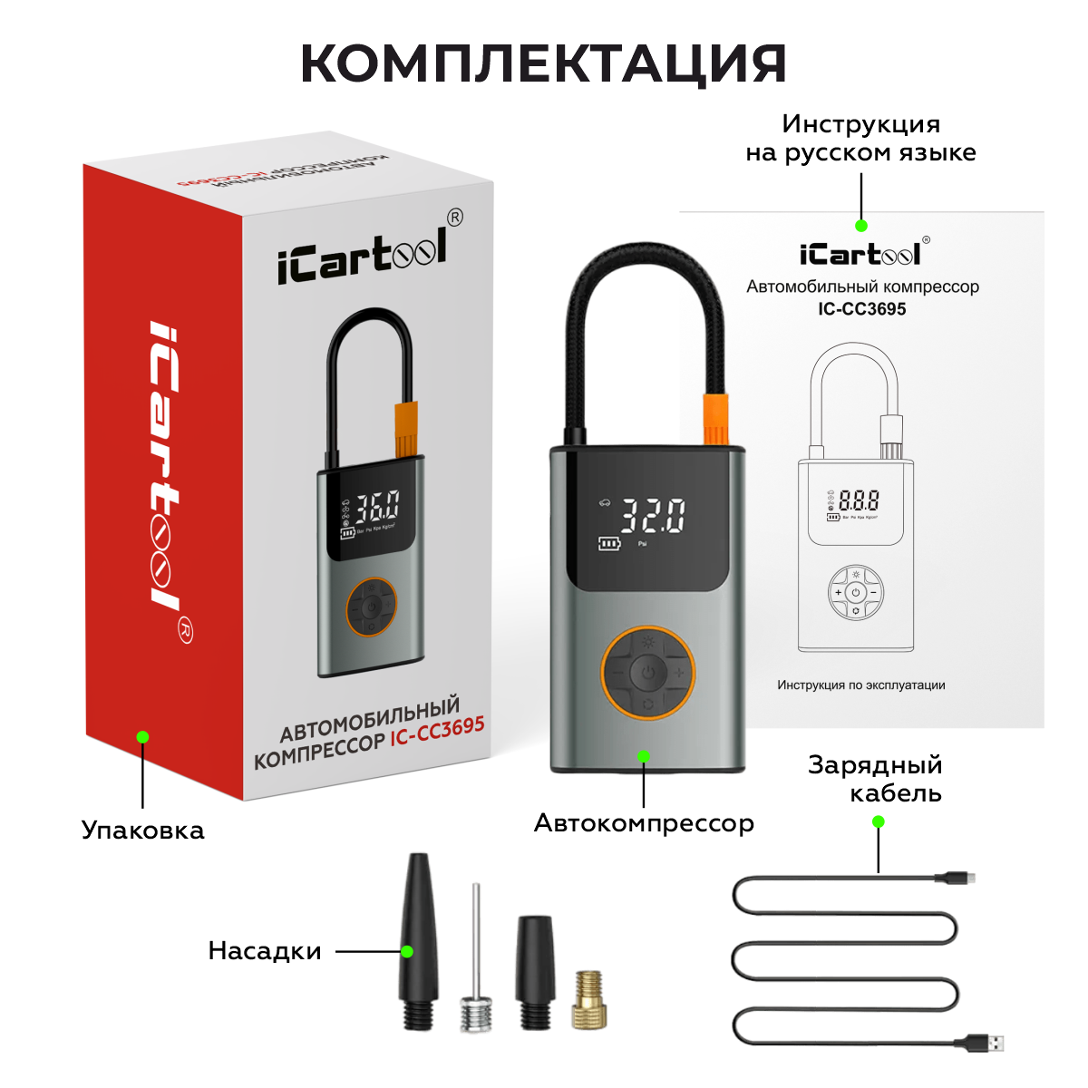 Автомобильный компрессор iCartool IC-CC3695