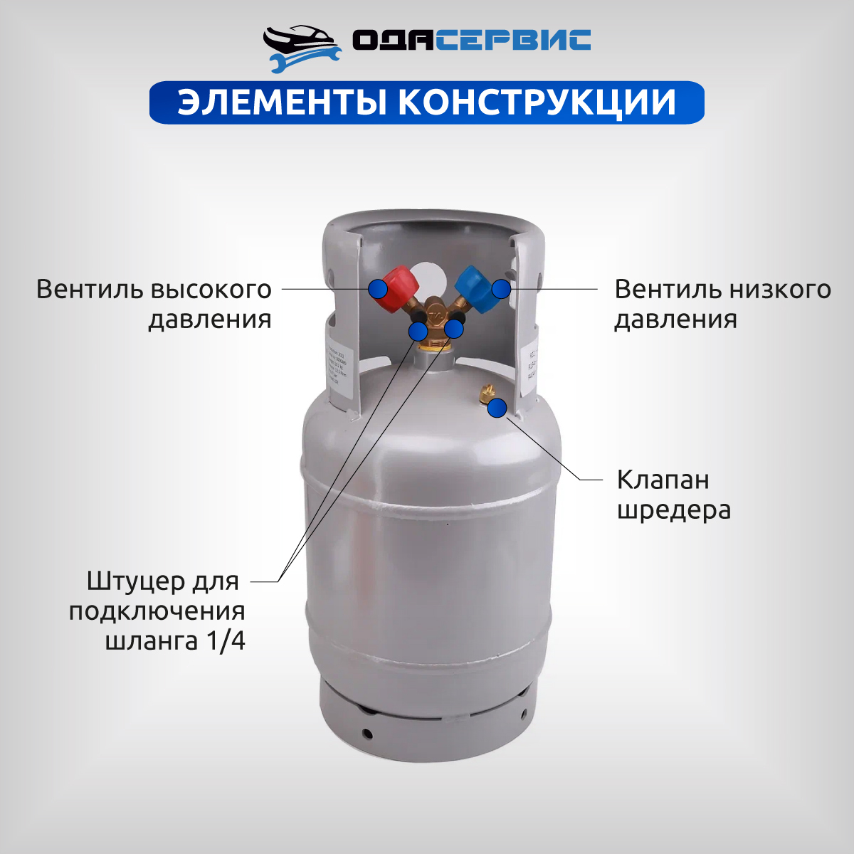 Баллон для сбора фреона, с вентилем, 12,5 л. ОДА Сервис ODA-33746