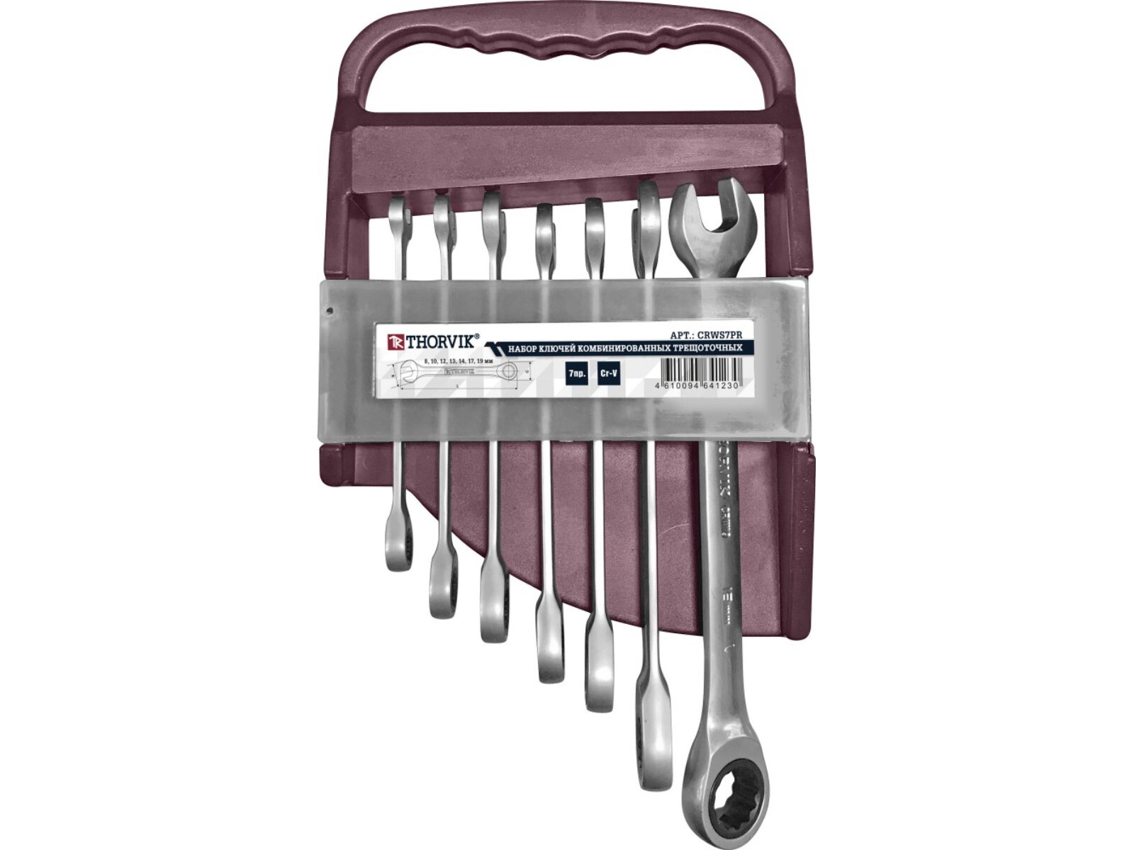 CRWS7PR Набор ключей гаечных комбинированных трещоточных на держателе, 8-19 мм, 7 предметов
