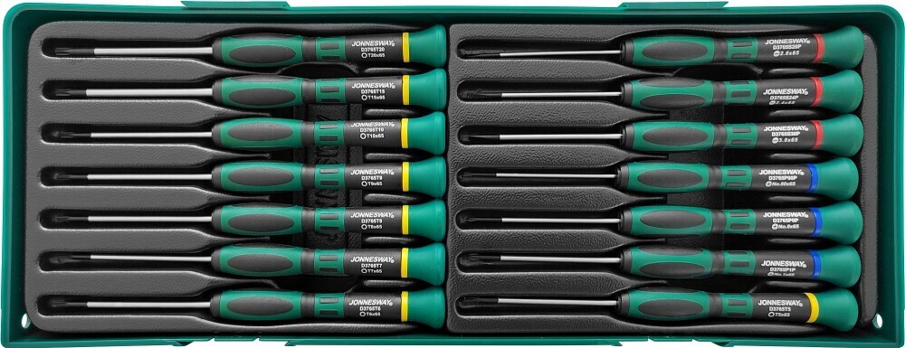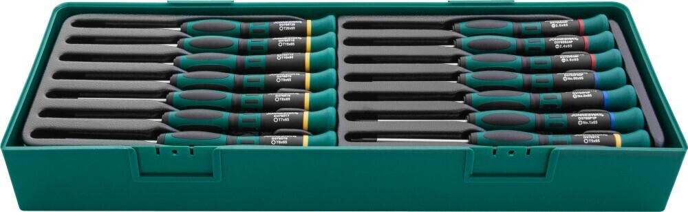 Набор отверток для точной механики, 65 мм из 14 предметов в пластиковом ложементе для удобства применения на рабочем месте. Область применения Набор отверток "D376514LSP" применяется для проведения точных работ со всеми видами крепежа, имеющего внутренний рабочий профиль PH и TORX.
