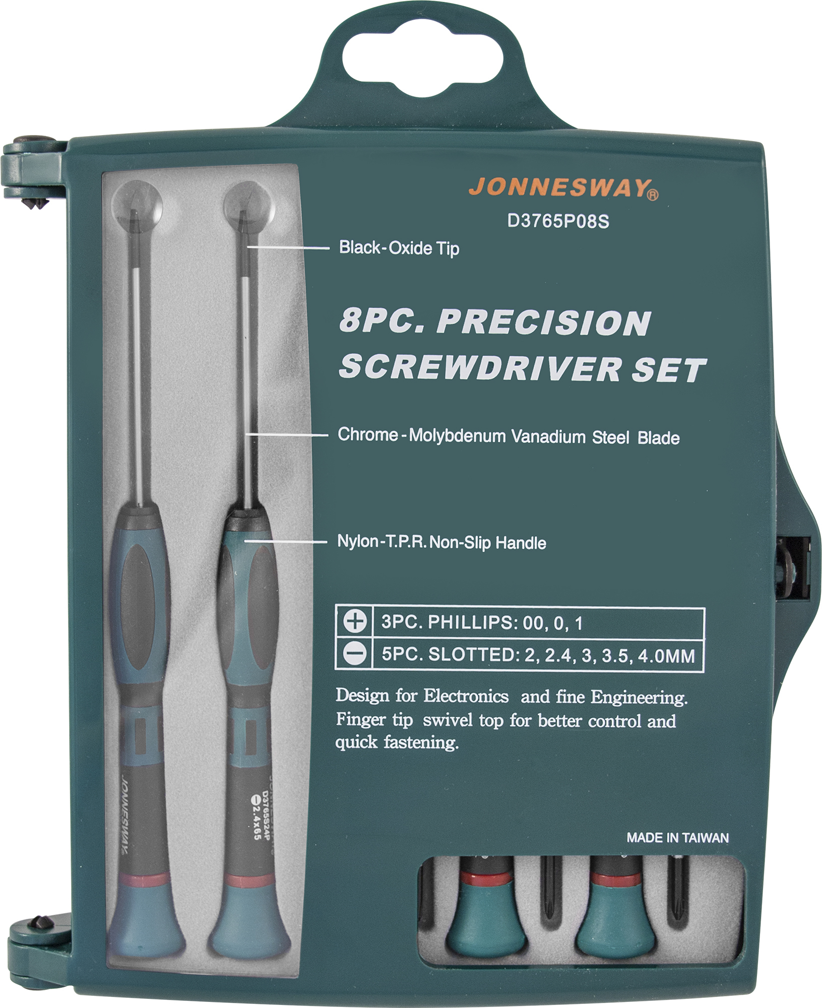 Содержание: - Отвертки шлицевые, SL, 5 шт.: SL2, SL2.4, SL3, SL3.5, SL4; - Отвертки крестовые, PH, 3 шт.:PH00, PH0, PH1; - Пластиковый бокс.