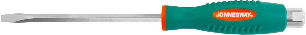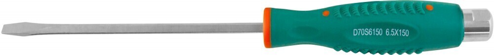Описание Стержневая отвертка серии "D70" со сквозной установкой стержня из хромомолибденованадиевой стали, намагниченным наконечником и затыльником рукоятки, выдерживающим воздействие удара, ограниченно превращающего отвертку в подобие кернера или выколотки. На затыльнике сформированы грани для применения рожкового ключа, увеличивающего крутящий момент при воздействии на резьбовой крепежный элемент. Современные материалы основы рукоятки обеспечивают снижение вибраций и реактивных моментов при ударной нагрузке, а сантопреновый, устойчивый к скольжению, верхний контактный слой - надежное удержание инструмента в руке. Область применения Применяются со всеми видами крепежа, имеющего врутренний рабочий профиль SL (шлицевой). Размеры
