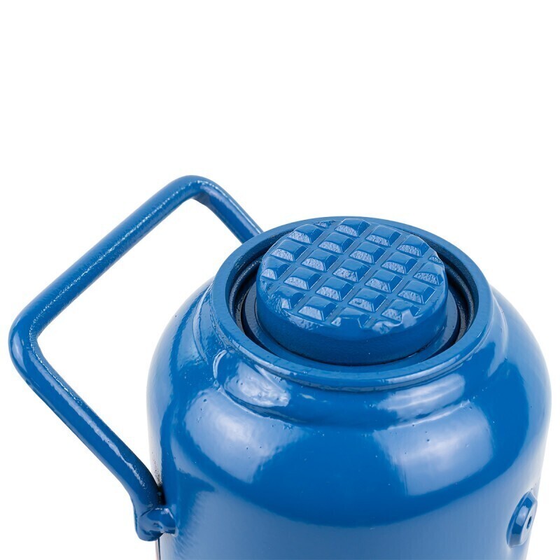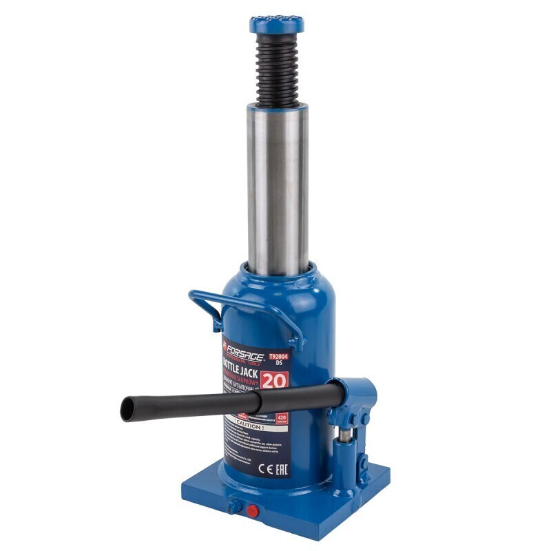 Домкрат бутылочный гидравлический с клапаном широко применяется на производствах, шиномонтажах, станциях технического обслуживания, а также в частных гаражах. Позволяет эффективно и безопасно поднять транспортное средство или иной груз с целью проведения ремонтных работ. Преимущества бутылочного домкрата: При относительно небольшом прикладываемом усилии имеет достаточно большую грузоподъемность и высокий КПД. Отличная точность фиксации груза, плавность хода штока. Домкрат оснащен специальным предохранительным клапаном для защиты от перегрузки. Компактные размеры, мобильность и легкость транспортировки (обязательно сохранять вертикальное положение устройства для предотвращения утечки масла). Грузоподъемность 20 тонны. Высота подхвата - 235 мм. Высота подъема - 445 мм. Ход штока: 160 мм. Ход винта: 60 мм.