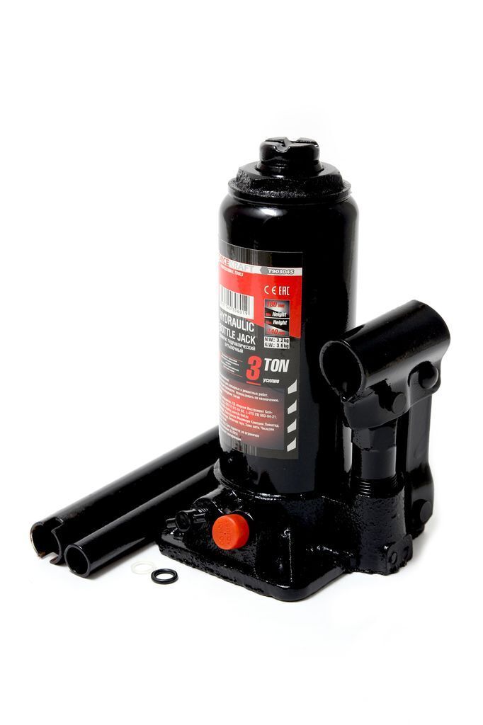 Домкрат бутылочный с клапаном 3т+доп. ремкомплект (h min-180мм, h max-340мм, ход штока-80мм, ход винта-50мм) в кейсе FORCEKRAFT FK-T90304S