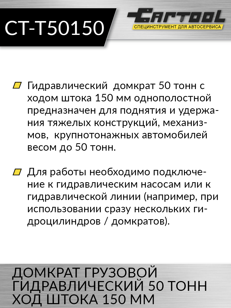 Домкрат грузовой гидравлический 50т. ход штока 150 мм. Car-Tool CT-T50150
