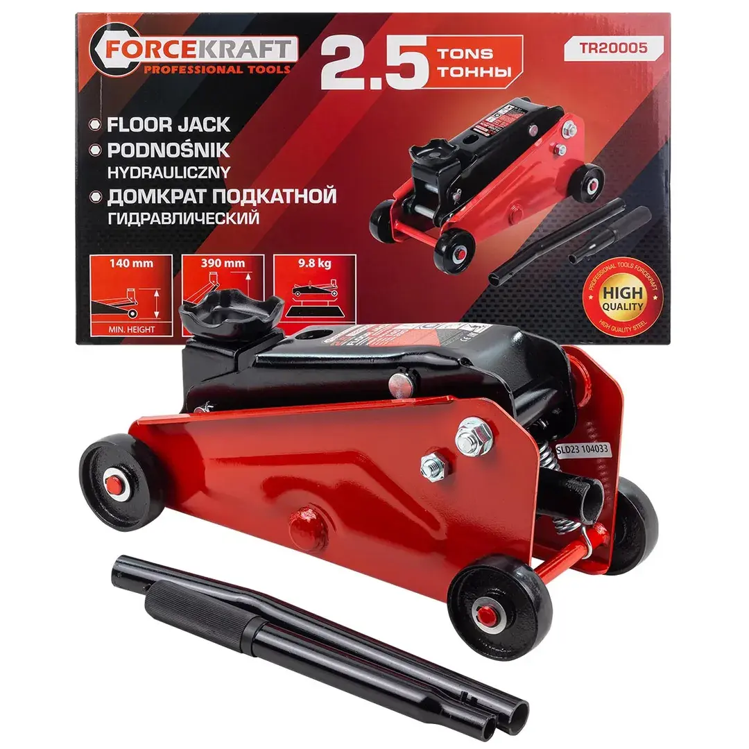 Домкрат подкатной гидравлический 2.5т (h min 140мм, h max 390мм) FORCEKRAFT FK-TR20005