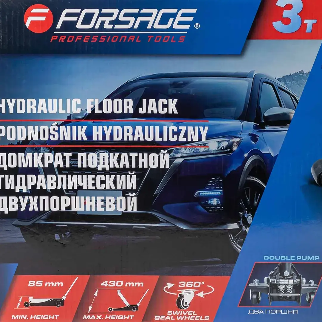 Домкрат подкатной гидравлический двухпоршневой 3т низкопрофильный с прорезиненной накладкой на рукоятке имеет высоту подхвата от 85 мм до 430 мм. Это позволяет использовать его для подъема различных типов автомобилей, включая низкопрофильные модели. Домкрат оснащен двумя поршнями, что обеспечивает более равномерное распределение нагрузки и повышает его стабильность во время подъема. Прорезиненная накладка на рукоятке обеспечивает удобство и комфорт при использовании.Мобильность и надежность: домкрат оснащен 2 фиксированными и 2 поворотными колесами, поэтому его можно легко перемещать. Благодаря предохранительному клапану домкрат соответствует стандарту безопасности. Особенность конструкции - низкий профиль: подходит для авто с низким клиренсом.В комплекте прочная резиновая накладка, которая предотвращает от повреждения автомобиля: исключает возможность повредить кузов, предохраняет от самопроизвольного соскальзывания.