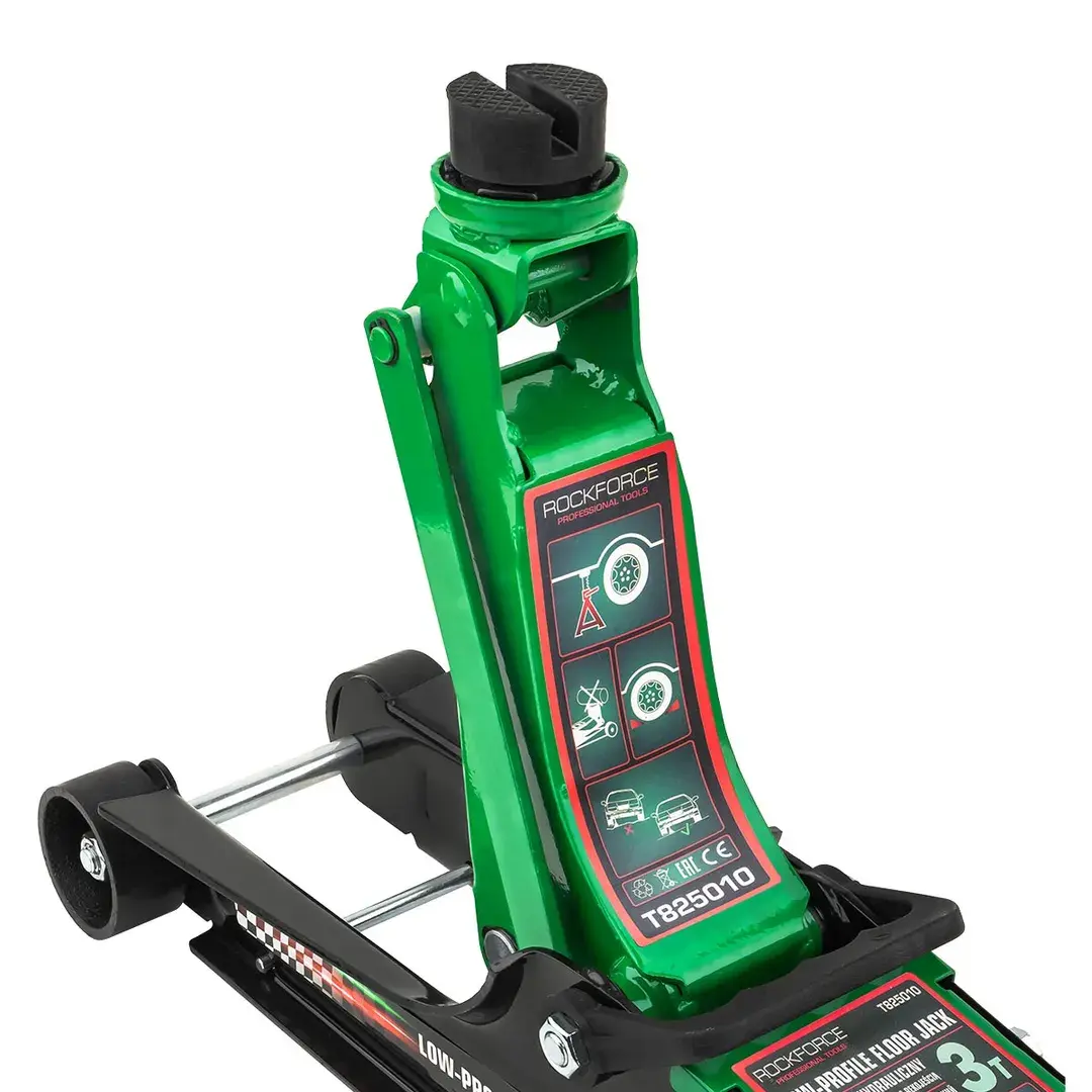 Домкрат подкатной гидравлический 3т идеально подходит для ежедневного использования в автомастерской, на шиномонтаже или в гараже. Прочный гидравлический блок с поршневым насосом обеспечивает быстрый подъем автомобиля без особых усилий. Подъем и опускание можно легко регулировать. Мобильность и надежность: домкрат оснащен 2 фиксированными и 2 поворотными колесами, поэтому его можно легко перемещать. Благодаря предохранительному клапану домкрат соответствует стандарту безопасности. Особенность конструкции - низкий профиль: подходит для использования с низким клиренсом (спорткары и некоторые седаны); поворотная ручка обечспечивает удобство при работе в ограниченных пространствах. Максимальная нагрузка: 3000 кг. Высота подхвата 85 мм. Высота подъёма 380 мм. В комплекте прочная резиновая накладка, которая предотвращает от повреждения автомобиля: исключает возможность повредить кузов, предохраняет от самопроизвольного соскальзывания