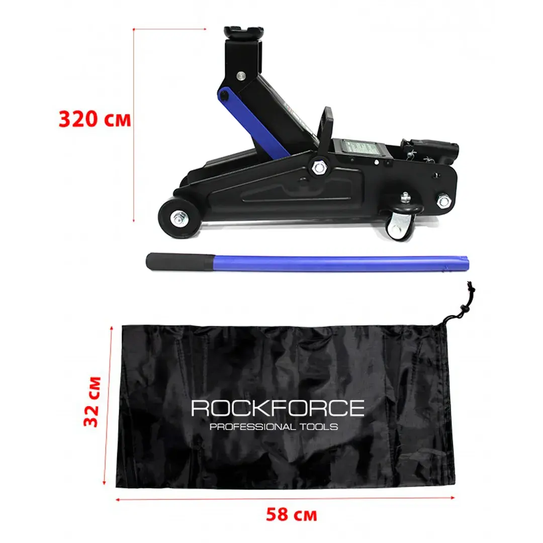 Домкрат подкатной гидравлический с усиленным корпусом "Profi"2т+чехол для хранения( h min 135мм.h max 320мм) Rock FORCE RF-TA820012