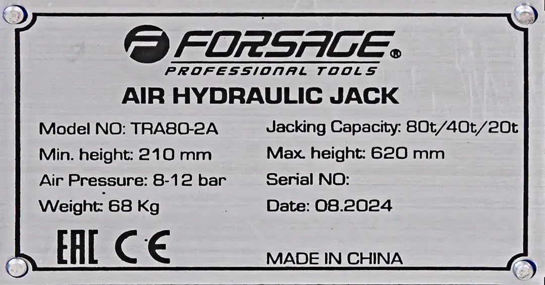 Домкрат подкатной пневмогидравлический 80т Forsage F-TRA80-2A [из 2-ух частей]