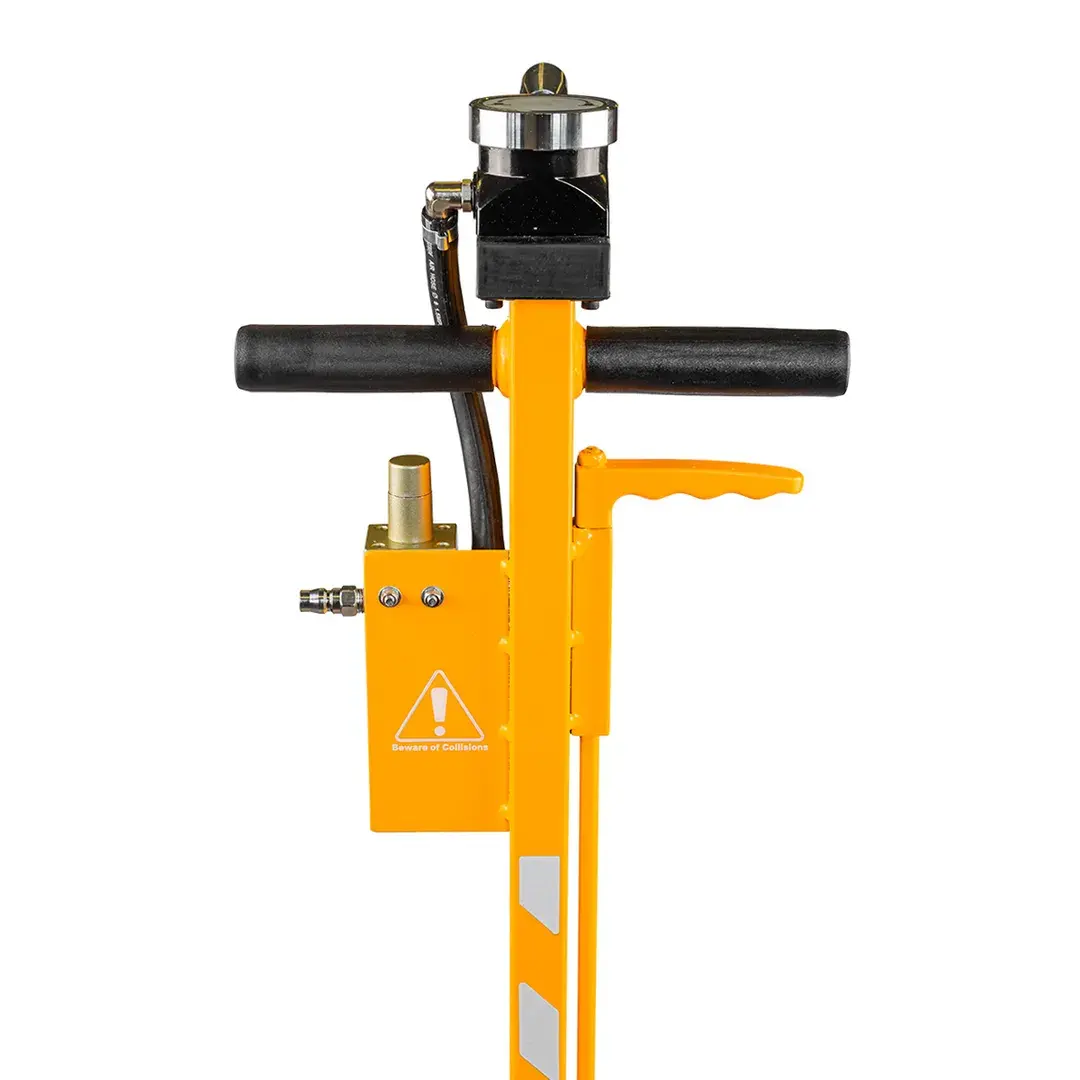 Домкрат пневмогидравлический подкатной - идеальный инструмент для проведении шиномонтажных и иных работ в автосервисах, мастерских, автобусных парках. Домкрат предназначен для подъема грузовых автомобилей, автобусов, строительной и другой крупной техники при проведении шиномонтажных и иных работ в автосервисах, мастерских, автобусных парках. Пневмогидравлический механизм подразумевает использование воздушного компрессора или другого источника сжатого воздуха для поднятия гидравлического поршня домкрата. Ручка домкрата оборудована штуцером под быстросьем USA-типа, фильтром для воздуха и рычагом для поднятия/опускания штока. Также ручка домкрата может фиксироваться под углами 90°, 135° и 180°, что обеспечивает удобство перемещения домкрата в рамках рабочей зоны. Домкрат также оснащен сменными удлинителями длиной 50, 100 и 150мм,что позволяет легко отрегулировать высоту в соответствии с потребностями. Характеристики:Грузоподьемность 35т Высота подхвата 360мм Максимальная высота подьема 910мм Ход штока 250мм, про