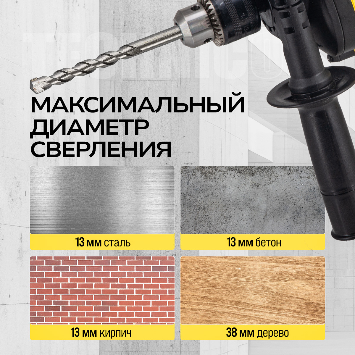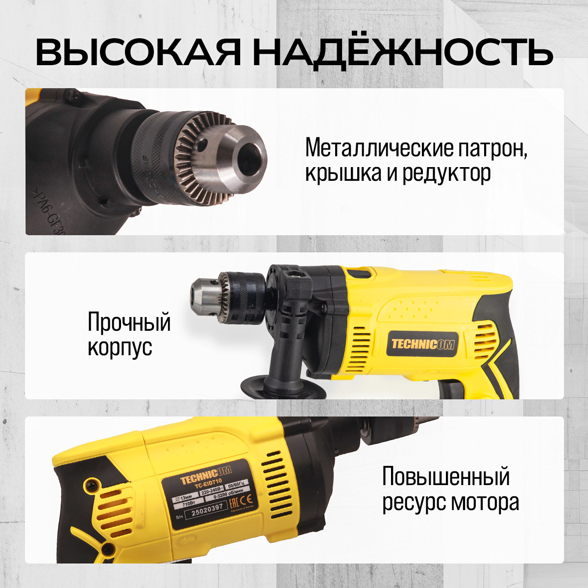 Дрель ударная электрическая TECHNICOM TC-EID710, 710Вт, 220В, 3200 об/мин, 48000 уд/мин