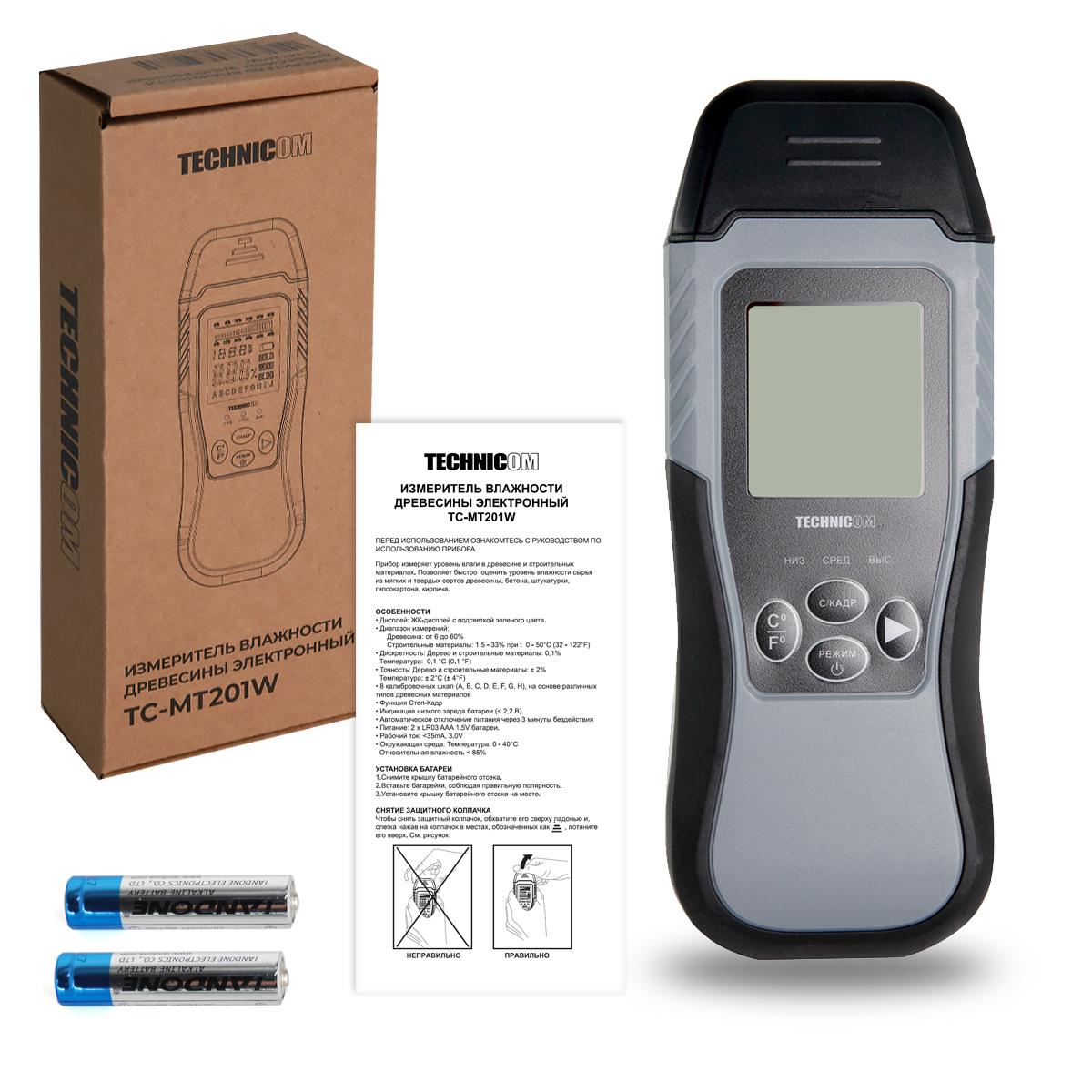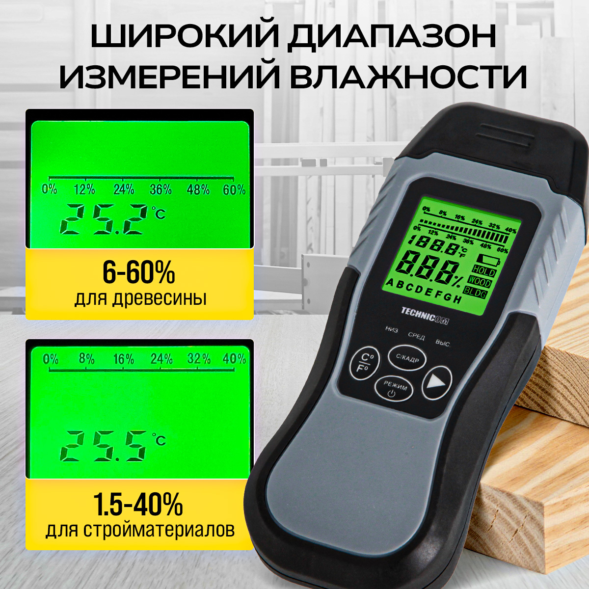 Электронный измеритель влажности древесины TECHNICOM TC-MT201W