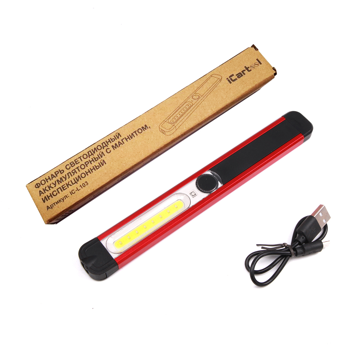 Фонарь светодиодный аккумуляторный с магнитом, инспекционный iCartool IC-L103