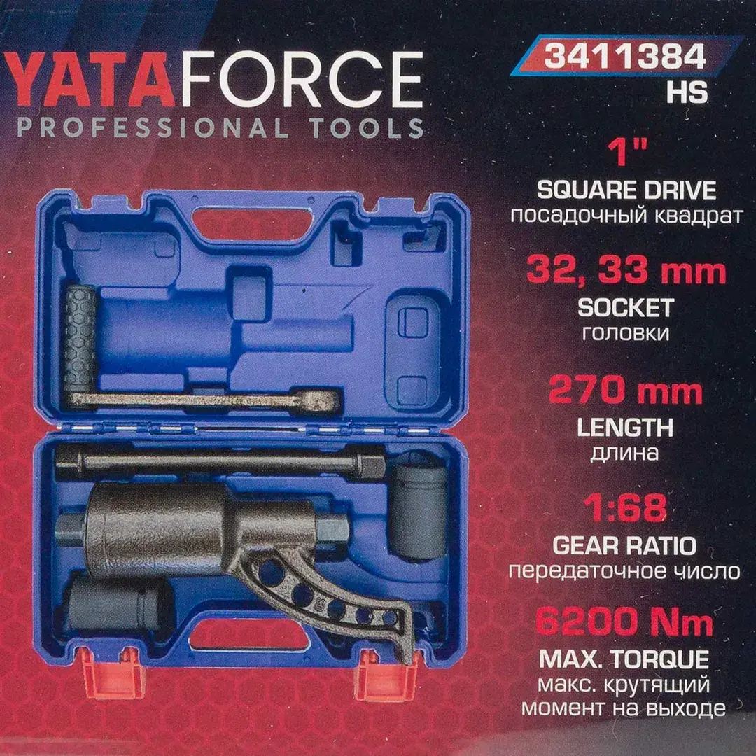 Гайковерт ручной с редуктором 1''(Головки-32мм и 33мм, длина-270мм, передаточное число 1:68, 6200 Н/м) YATAFORCE YF-3411384 HS