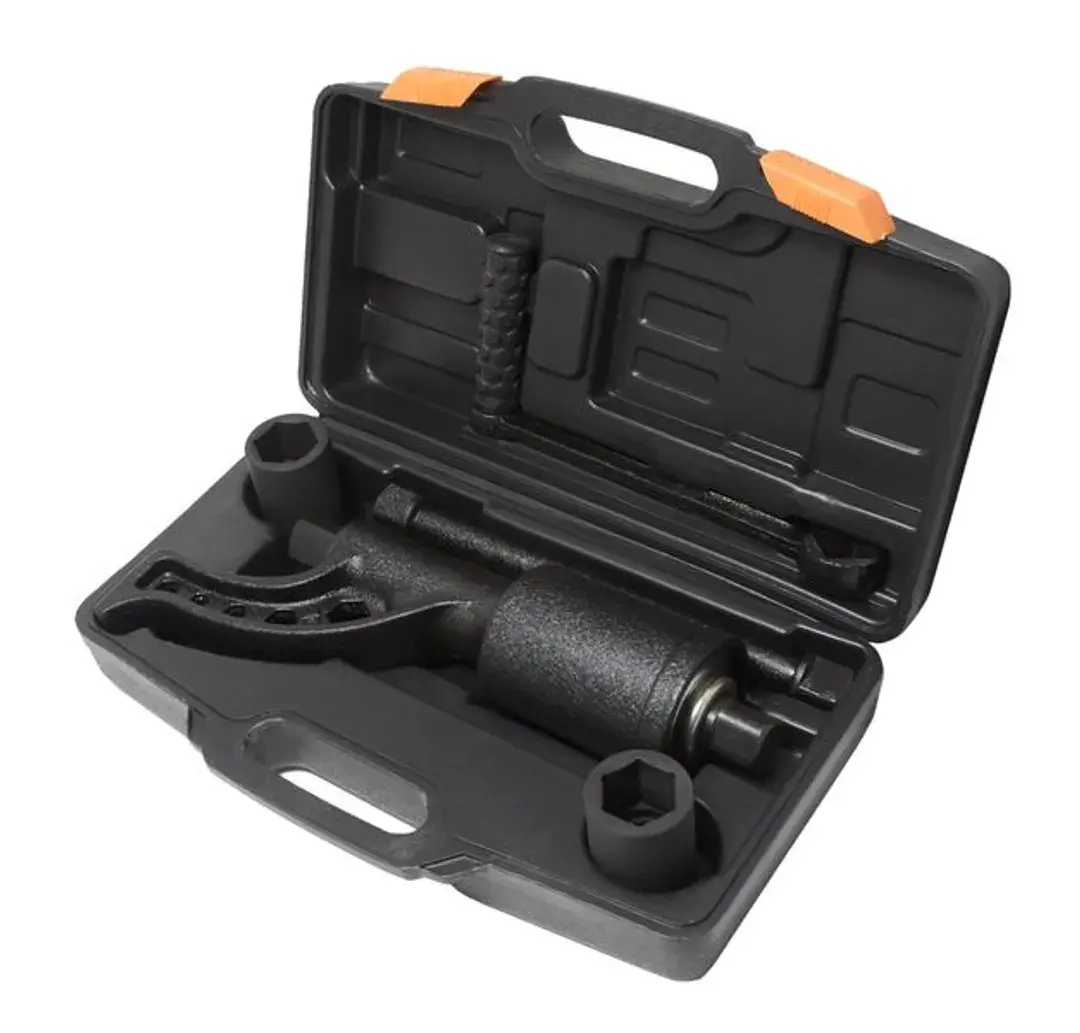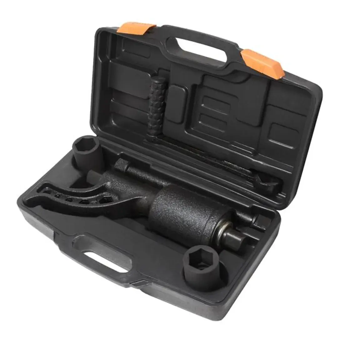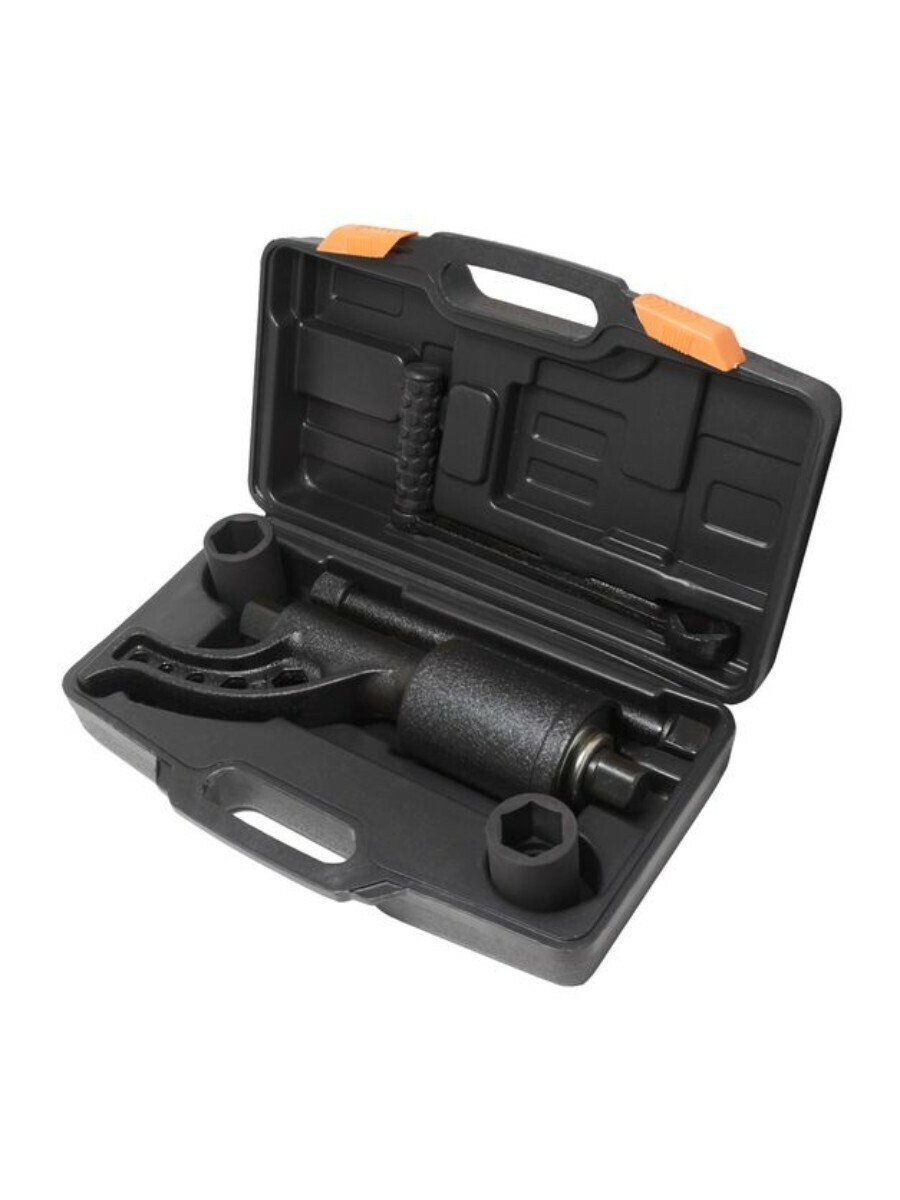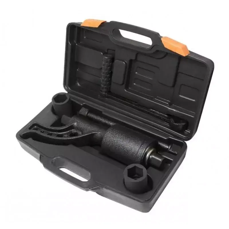 Гайковерт ручной с редуктором в кейсе предназначен для откручивания различных резьбовых соединений на грузовых автомобилях, строительных сооружениях и др. При помощи "мясорубки"можно выполнять работу не прилагая больших усилий. Присоединительный квадрат 1". Передаточное число 1:68. Длина 310 мм. Комплектуется головками: 32, 33 мм. Максимальный момент силы 5800 Нм. В пластиковом кейсе.