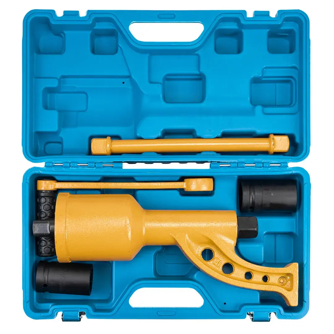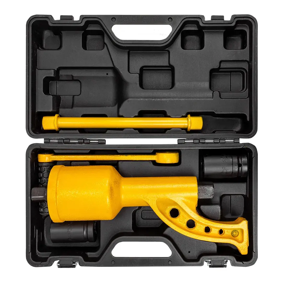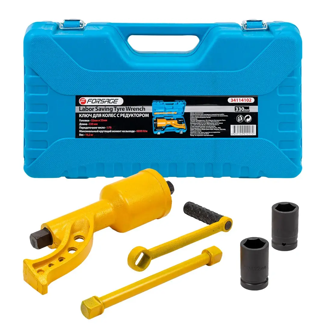 Гайковерт ручной с редуктором в кейсе предназначен для откручивания различных резьбовых соединений на грузовых автомобилях, строительных сооружениях и др. При помощи "мясорубки"можно выполнять работу не прилагая больших усилий. Длина : 330мм; Максимальный крутящий момент 6800 Н/м. Посадочный квадрат 1". Размеры головок 32 и 33 мм в комплекте. Рабочий профиль 6 граней. Для удобства хранения и транспортировки поставляется в прочном пластиковом кейсе.