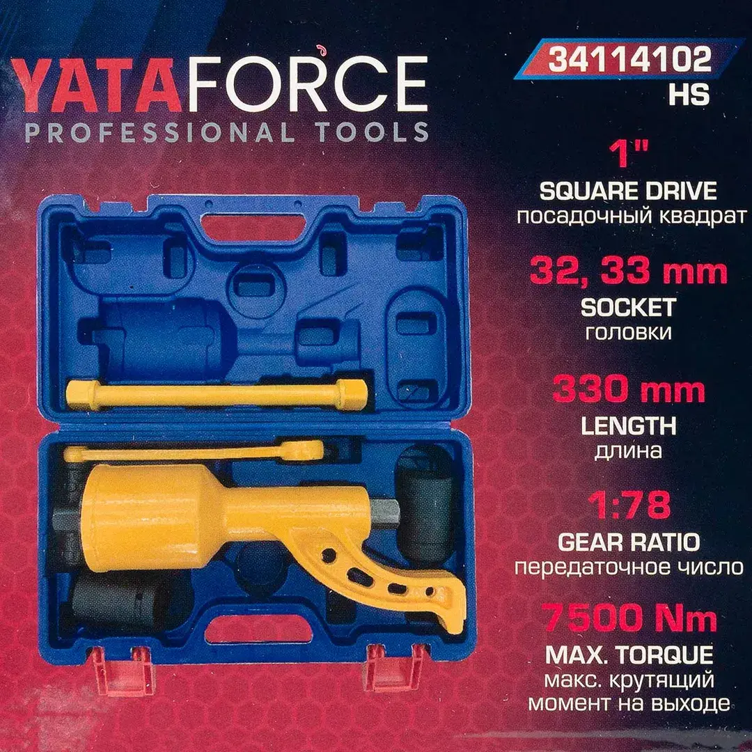 Гайковерт ручной с редуктором (Головки-32мм и 33мм, длина-330мм, передаточное число 1:78, 7500 Н/м) YATAFORCE YF-34114102 HS