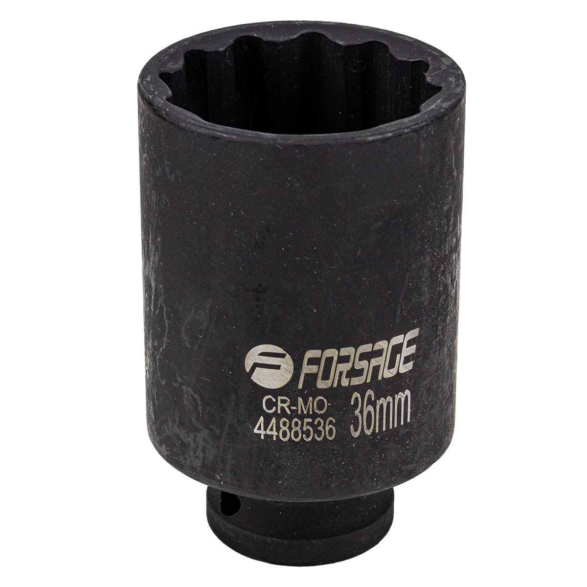 Головка ударная 36мм (12 граней),1/2"- это незаменимый инструмент для профессиональных механиков и автолюбителей. Головка изготовлена из высококачественной хромомолибденовой стали, что придает ей прочность и стойкость к интенсивному использованию. Головка имеет 12-гранный профиль, который обеспечивает прочное сцепление с болтами и гайками. Головка имеет удлиненную форму, что позволяет работать с крепежом, расположенным в углублениях или на длинных шпильках. Головка снабжена 1/2"квадратным приводом, что обеспечивает ее совместимость с различными ручными и пневматическими инструментами.