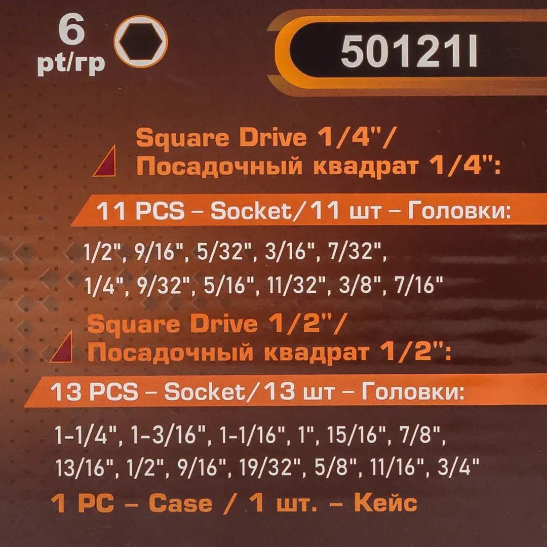 Головки 1/4'', 1/2'', набор 25пр. FORSTIME FT-50121I