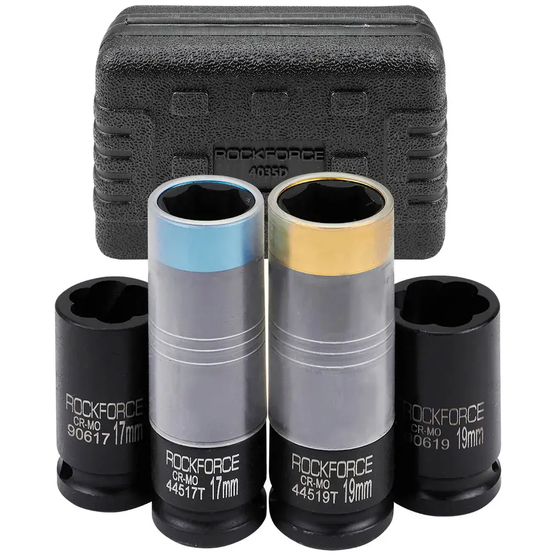 Головки, набор 4пр. (17, 19мм (6гр.), 17, 19мм (сорв.гр.) RockFORCE RF-4035D