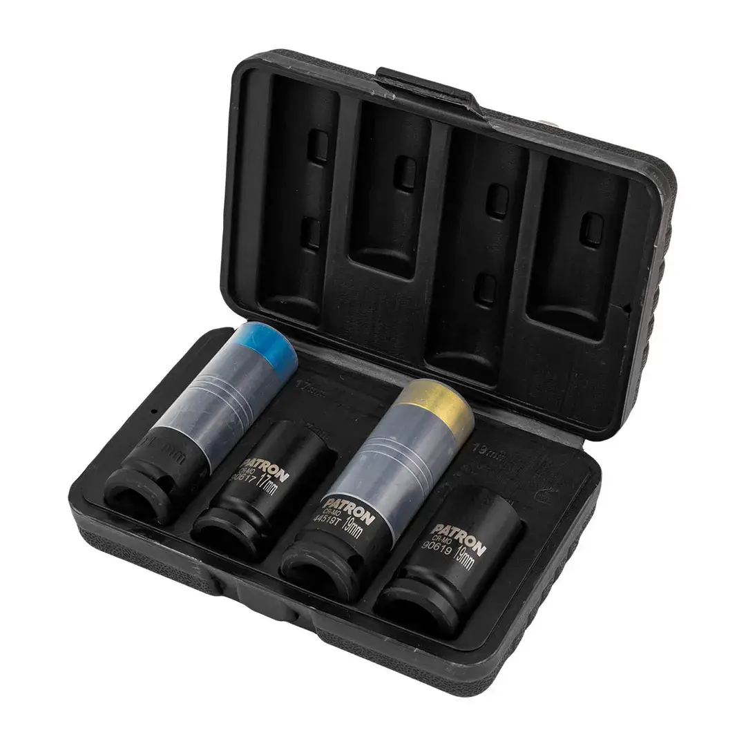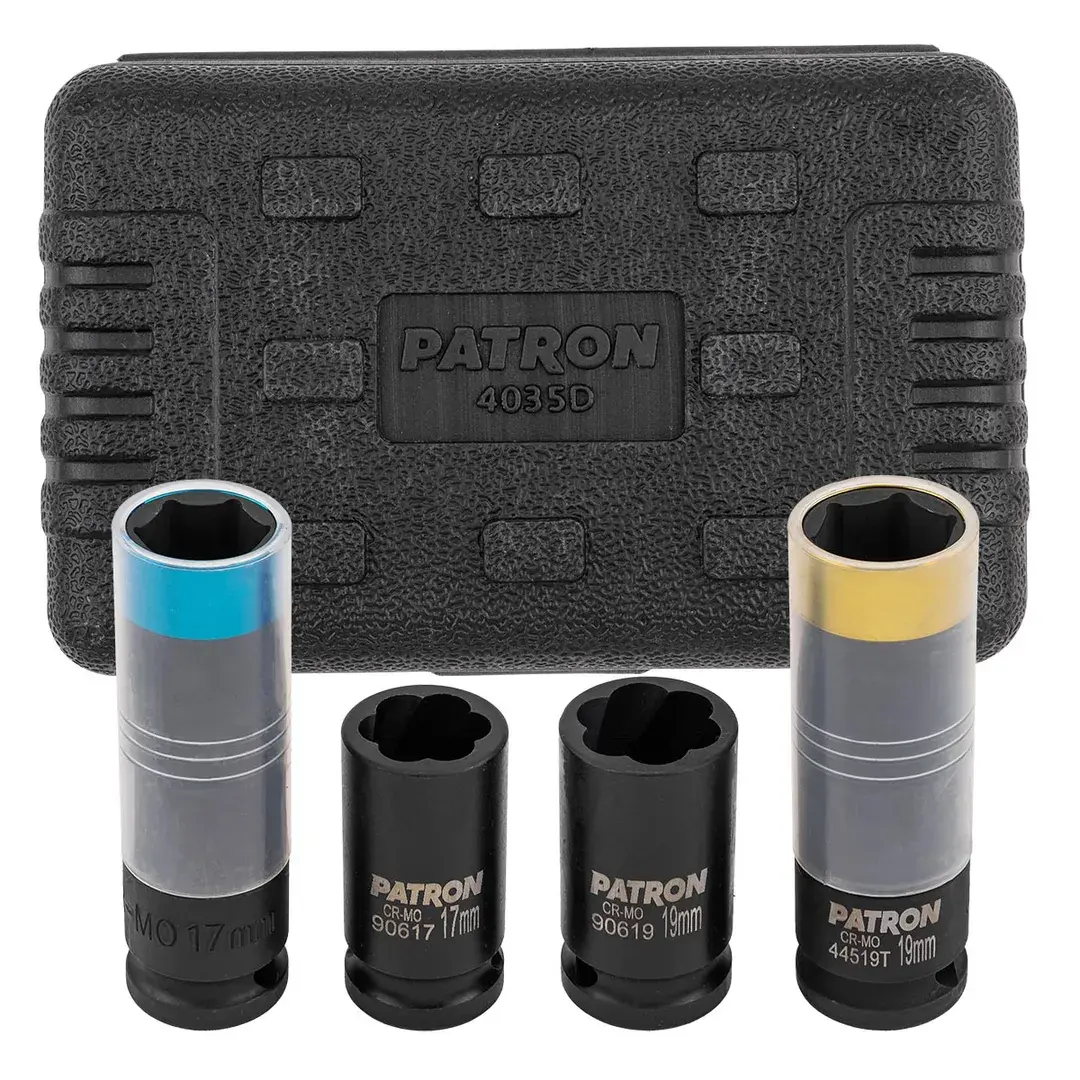 Головки, набор 4пр. (17, 19мм (6гр.), 17, 19мм (сорв.гр.) PATRON P-4035D