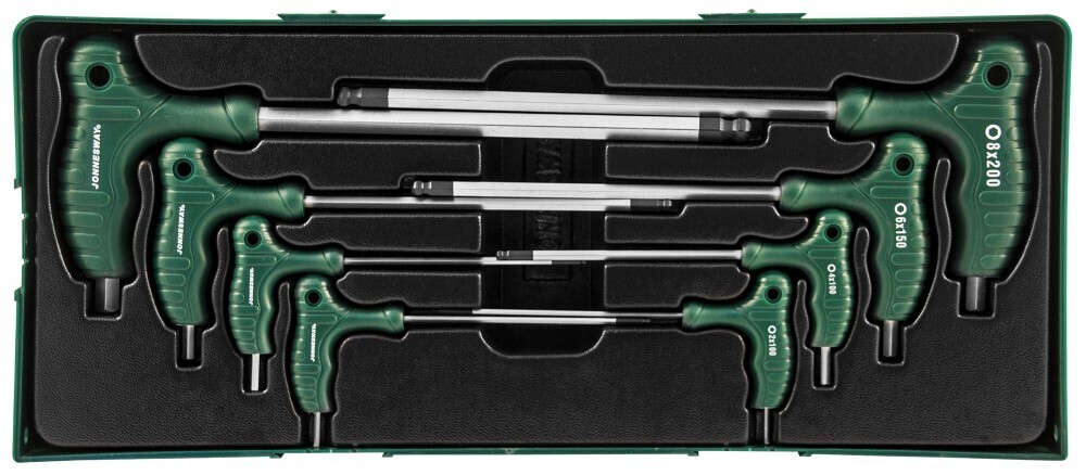 Комплект угловых шестигранников двусторонних с шаром 2-10мм , 8 предметов (ложемент).