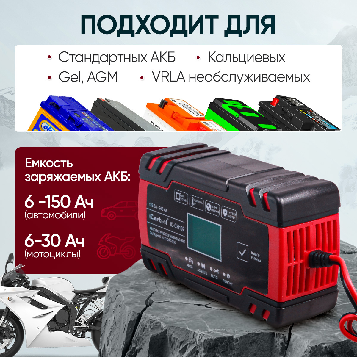 Импульсное зарядное устройство 12/24В с функцией восстановления iCartool IC-CH102