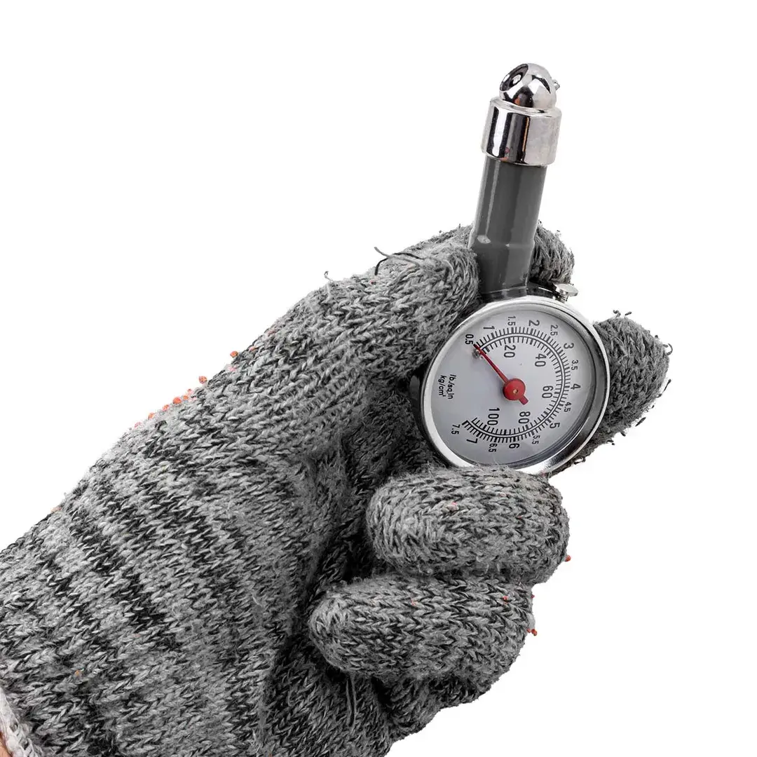 Индикатор для проверки давления в шинах (0-7,5 Bar) - это удобный и надежный инструмент, который позволяет вам контролировать и поддерживать правильное давление в шинах вашего автомобиля и других транспортных средств. Индикатор обладает высокой точностью измерений, что позволяет вам быть уверенными в результатах. Яркий и четкий манометр с удобной шкалой обеспечивает легкость считывания показаний. Компактный и прочный корпус индикатора обеспечивает долгий срок службы. Удобная ручка позволяет надежно удерживать индикатор во время измерения.