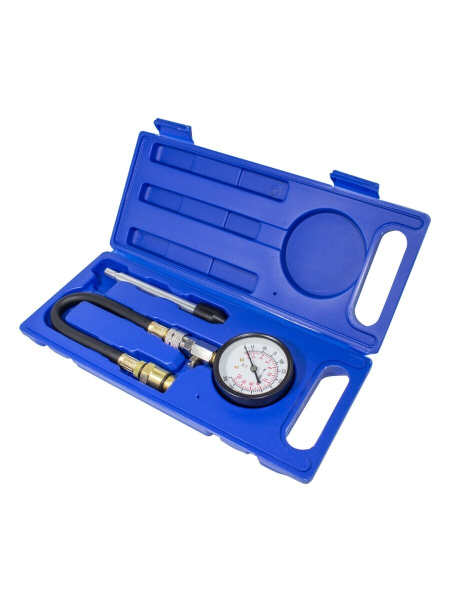 Набор с индикатором компрессии бензинового двигателя из 3 предметов, в кейсе - это прибор, который позволяет измерить давление в цилиндрах двигателя автомобиля. Он состоит из манометра, жесткого прижимного адаптера-переходника 150мм и набора адаптеров для различных типов двигателей. Манометр имеет диапазон измерений от 0 до 20 бар и точность измерения ±0,25 бар. Жесткий прижимной адаптер обеспечивает надежное крепление индикатора на двигателе и предотвращает его смещение во время измерения. Набор адаптеров позволяет использовать индикатор для различных типов бензиновых двигателей, включая двигатели с резьбой M14х1.25 и M18х1.5. Каждый адаптер имеет свою резьбу и подходит только для определенного типа двигателя. Компрессометр бензинового двигателя поставляется в кейсе для удобства хранения и транспортировки.