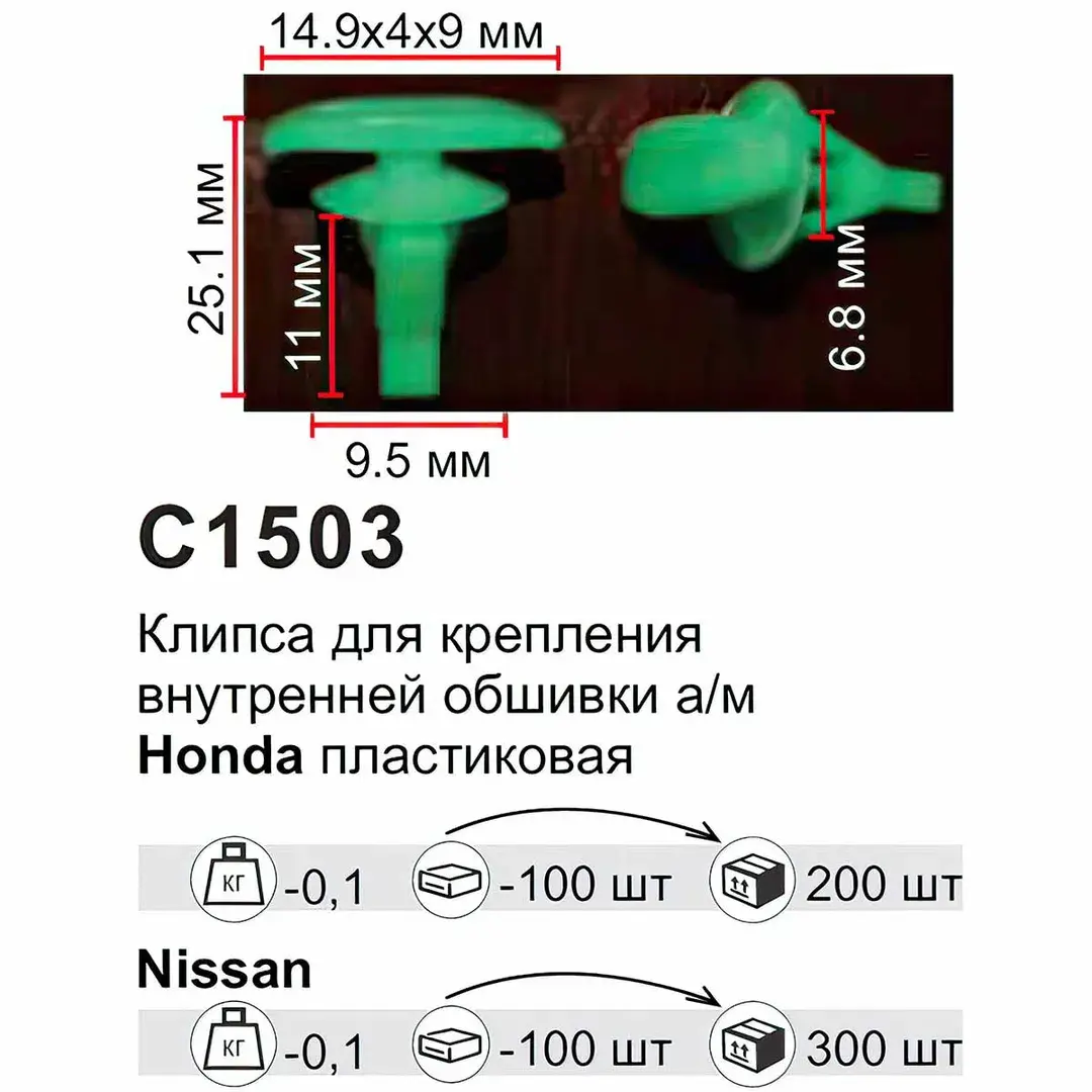 Клипса для крепления внутренней обшивки а/м Тойота пластиковая (100шт/уп.) Forsage клипса C1503Natural(Toyota)
