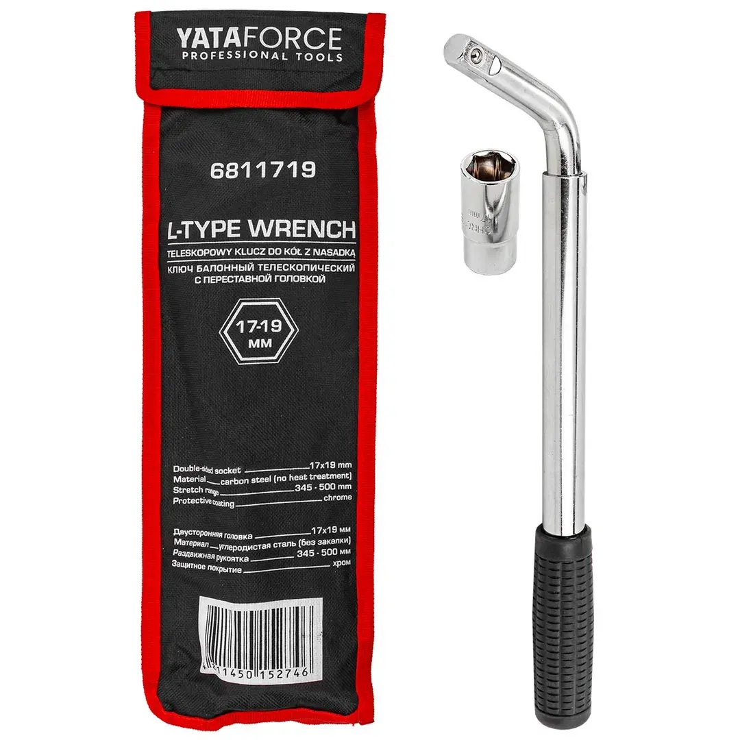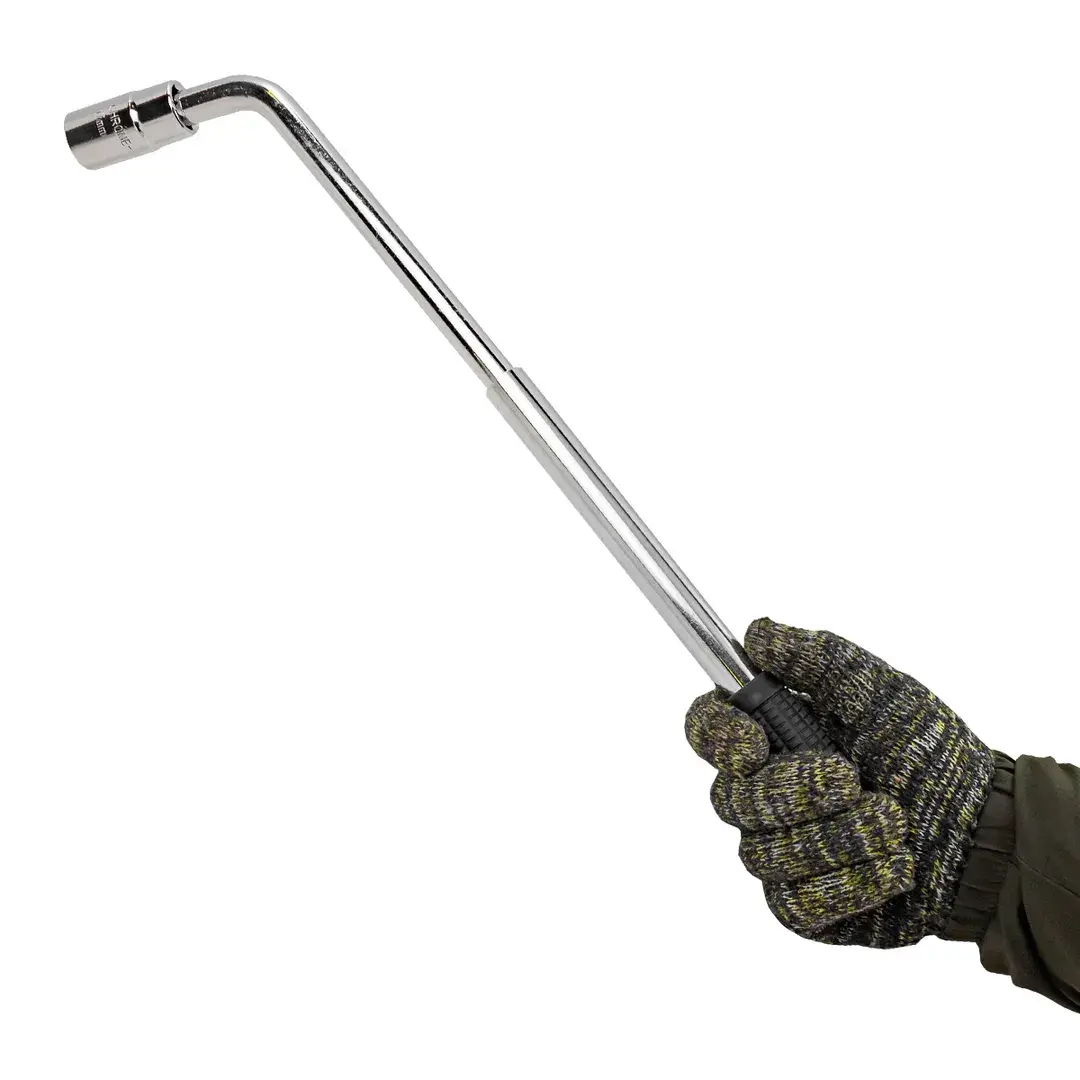 Ключ балонный Г-образный телескопический является необходимым и даже незаменимым инструментом для ремонта колеса. Баллонным ключом называется гаечный ключ торцового типа, которым откручивают или закручивают гайки при работе с автомобильными колесами. С помощью него водитель сможет самостоятельно поменять колесо, затянуть и установить крепёж (болты, гайки). Данный инструмент изогнут на 120 градусов. Телескопическая конструкция позволяет осуществлять работу с крепежом в труднодоступных местах, а также позволяет прикладывать большее усилие при закручивании/откручивании за счет увеличенной длины рычага. С одной стороны Г-образного ключа расположен посадочный квадрат 1/2", с другой - прорезиненная рукоятка, которая обеспечивает комфорт при использовании. Ключ можно также применять и при сборке различных конструкций с применение болтовых (резьбовых) соединений, при ремонте других деталей авто. Гаечный ключ пригоден для использования как в собственном гараже и в быту, так и на специализированной СТО. В комплекте с к