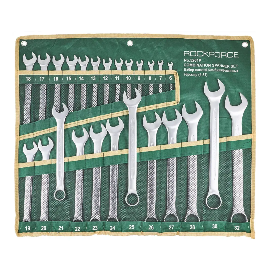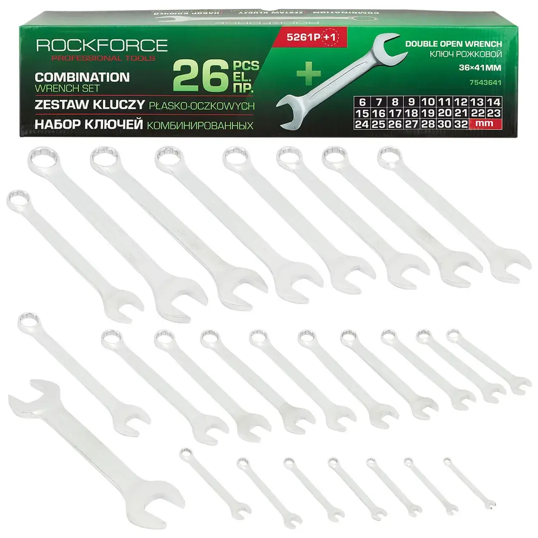 Ключи комбинированные (6-28, 30, 32мм) и ключ рожковый 36х41мм, набор 26пр. RockFORCE RF-5261P+1