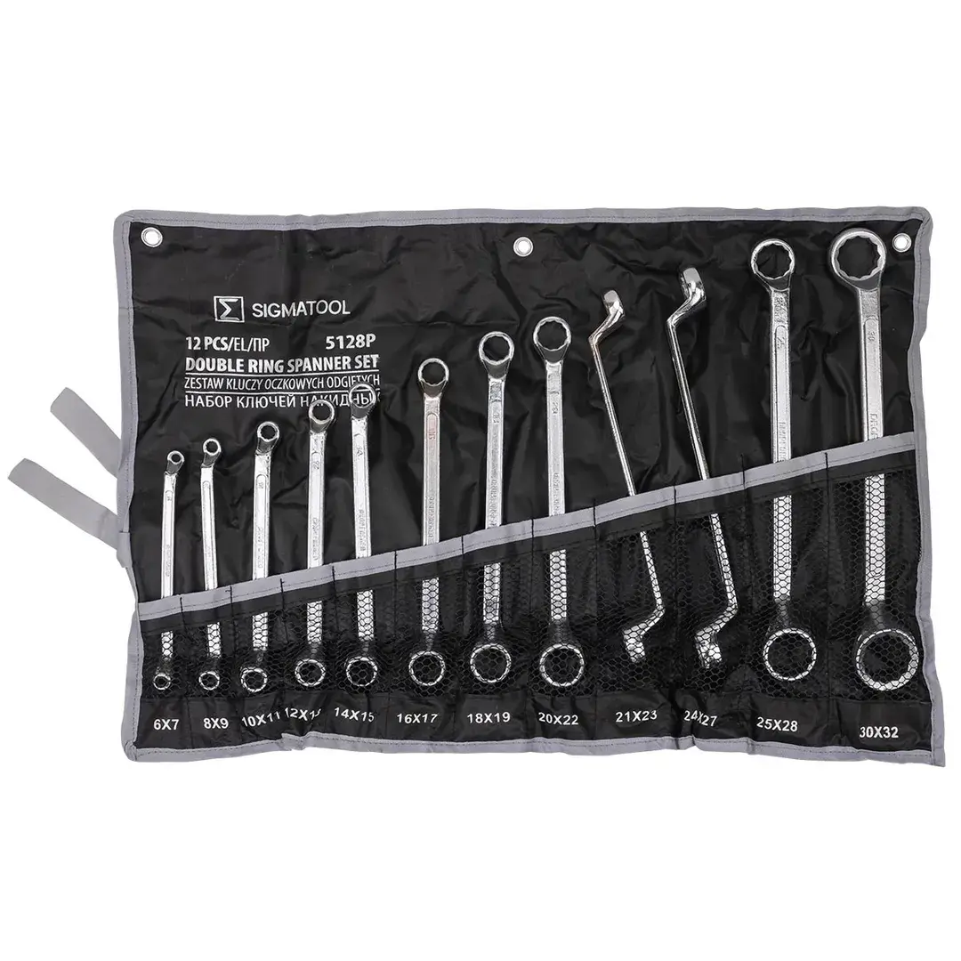 Ключи накидные, отогнутые на 75град., набор 12пр. (6х7, 8х9, 10х11, 12х13, 14х15, 16х17, 18х19, 20х22, 21х23, 24х27, 25х28, 30х32мм) SIGMATOOL Sigmatool-5128P