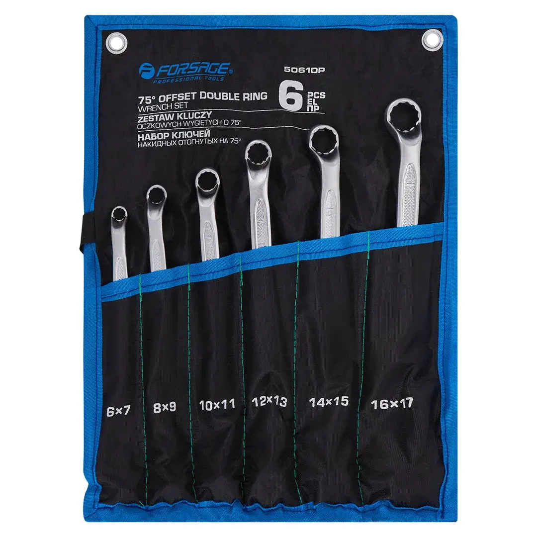 Ключи накидные отогнутые на 75град., набор 6пр. (6х7, 8х9, 10х11, 12х13, 14х15, 16х17мм) Forsage F-50610P