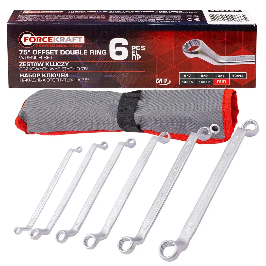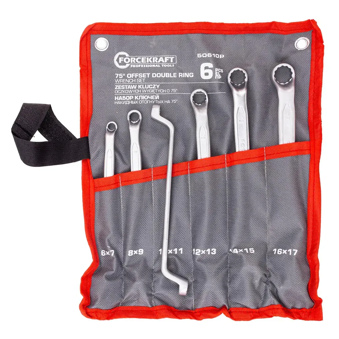 Ключи накидные, отогнутые на 75град., набор 6пр. (6х7, 8х9, 10х11, 12х13, 14х15, 16х17мм) FORCEKRAFT FK-50610P