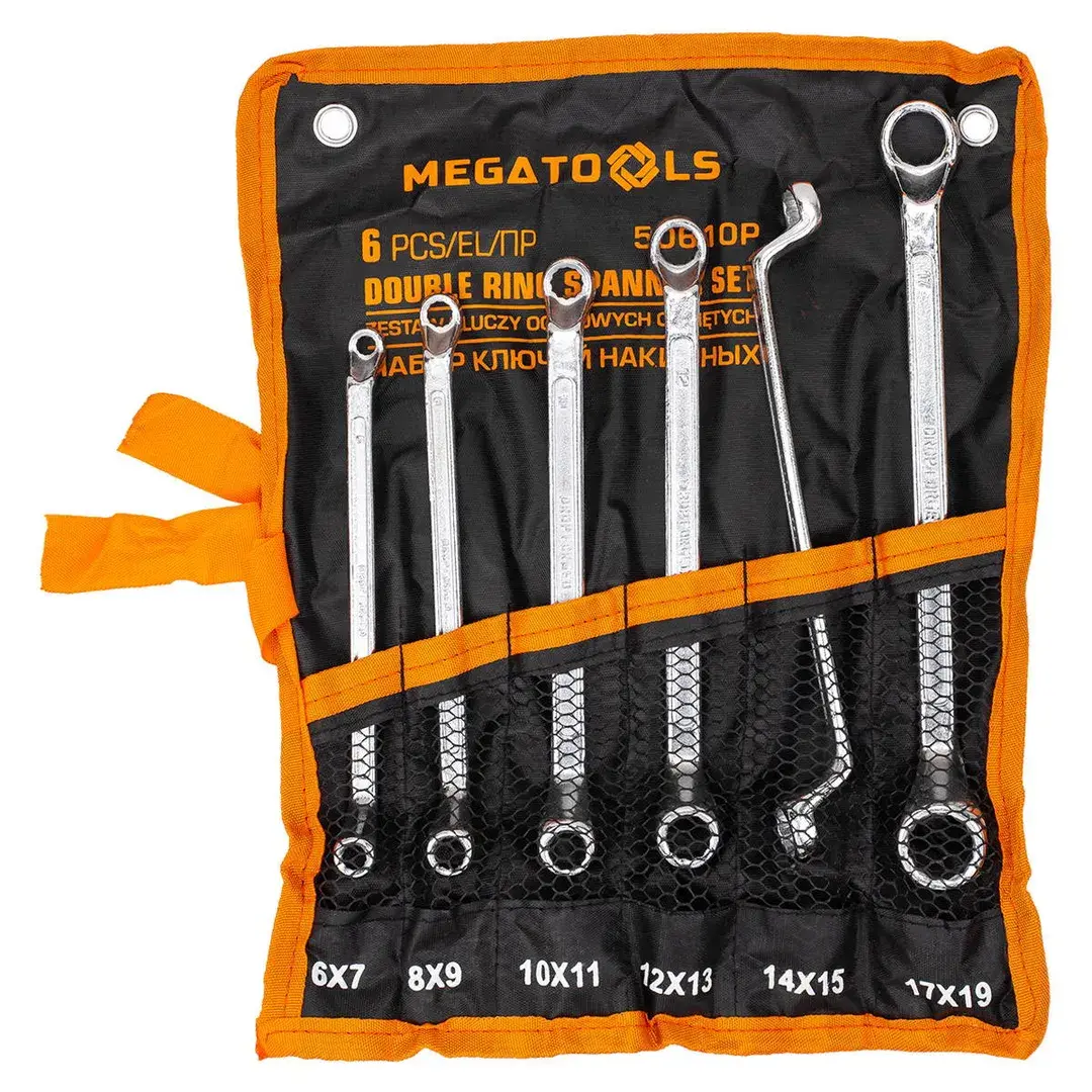 Ключи накидные, отогнутые на 75град., набор 6пр. (6х7, 8х9, 10х11, 12х13, 14х15, 17х19мм) MEGATOOLS MT-50610P