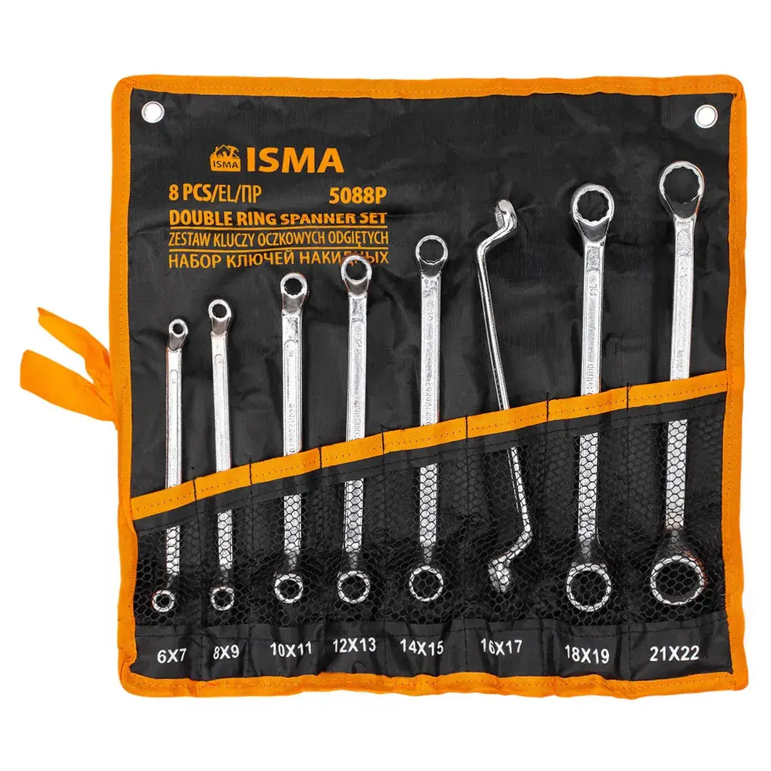 Ключи накидные, отогнутые на 75град., набор 8пр. (6х7, 8х9, 10х11, 12х13, 14х15, 16х17, 18х19, 21х22мм) ISMA ISMA-5088P