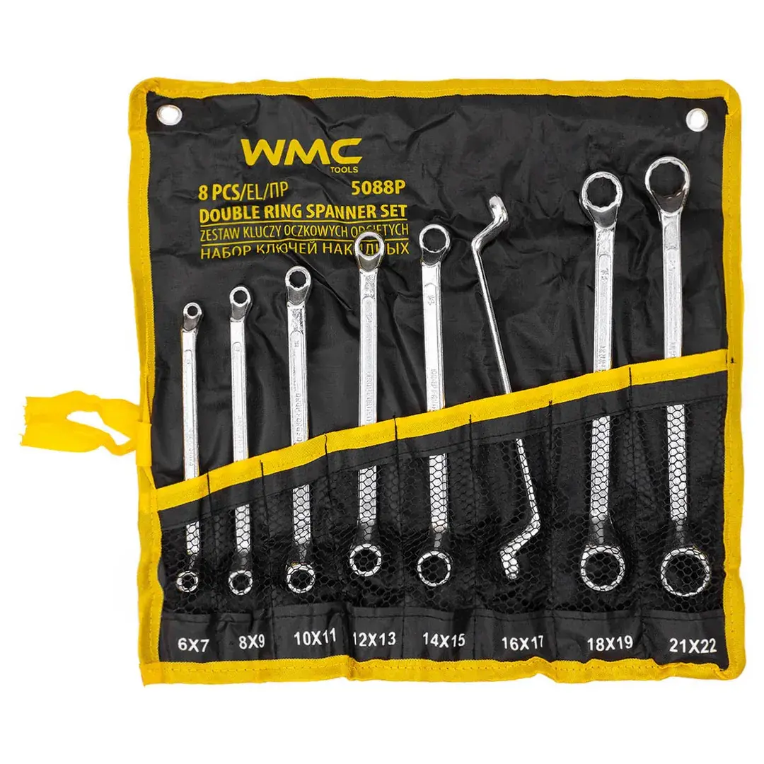 Ключи накидные, отогнутые на 75град., набор 8пр. (6х7, 8х9, 10х11, 12х13, 14х15, 16х17, 18х19, 21х22мм) WMC TOOLS WMC-5088P