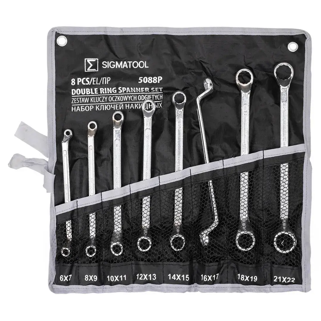 Ключи накидные, отогнутые на 75град., набор 8пр. (6х7, 8х9, 10х11, 12х13, 14х15, 16х17, 18х19, 21х22мм) SIGMATOOL Sigmatool-5088P